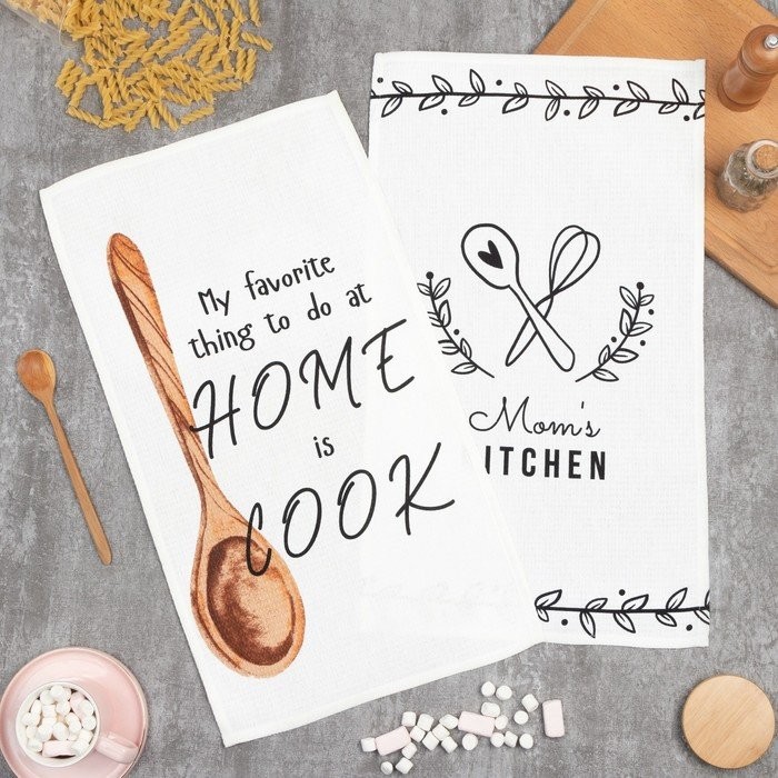 Набор кухонных полотенец Доляна Home cook, 35×60 см -2 шт, 100% хл, вафля 160 г/м2