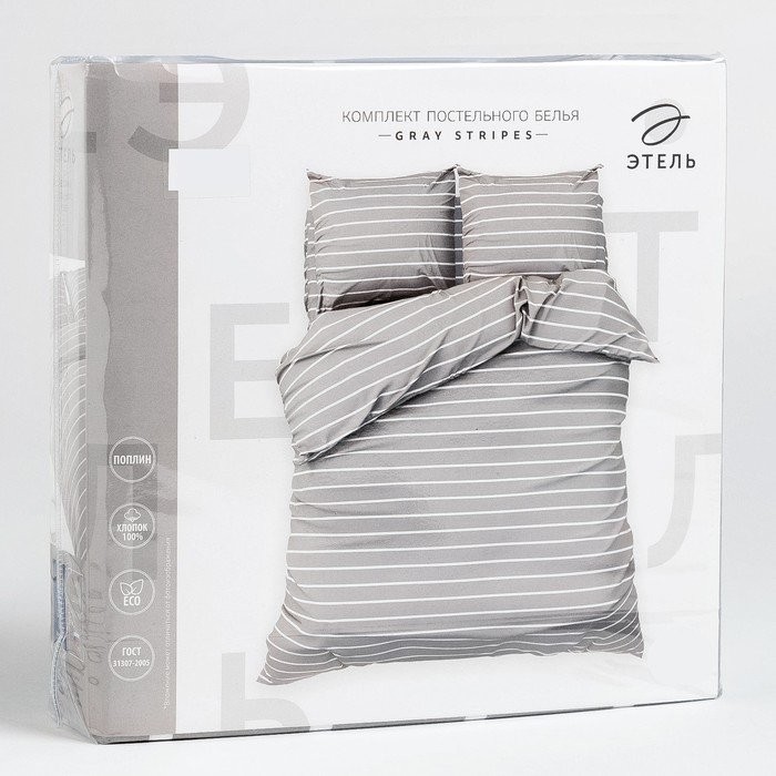 Постельное бельё Этель 2 сп Gray stripes 175х215см,200х220см,70х70см-2 шт, 100% хлопок, поплин