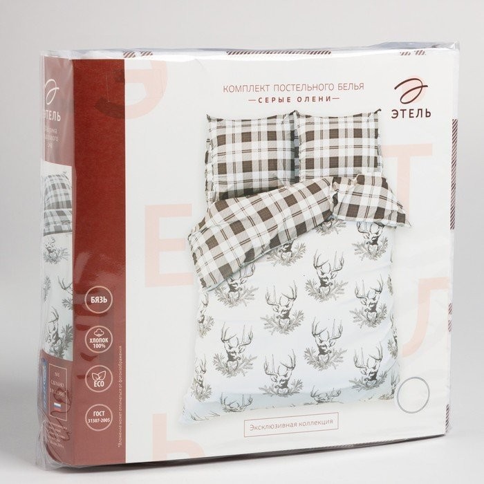 Постельное бельё Этель дуэт «Серые олени» 143×215 см — 2 шт, 220×240 см, 70×70 см -2 шт