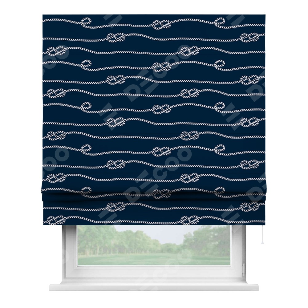 Римская штора производителя «Cortin», используется для проёма, пошита из ткани блэкаут с нанесением сублимационной печати «Морской узел». Имеет универсальный механизм и подходит для монтажа: на потолок, на стену и в нишу.