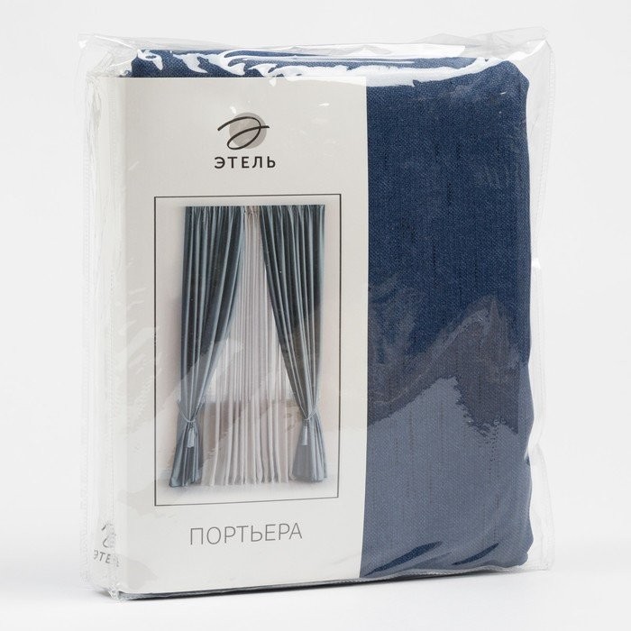 Штора портьерная Этель «Классика», цвет синий, на шторной ленте, 145×265 см, 100% п/э