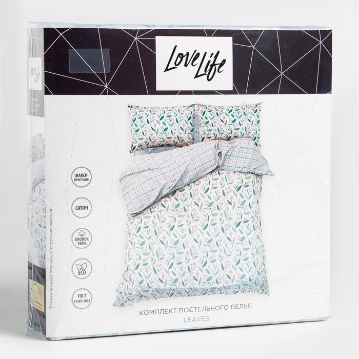 Постельное бельё LoveLife евро Leaves 200×217 см, 225×240 см, 50х70см-2шт, 100%хлопок, сатин, 125г/м²