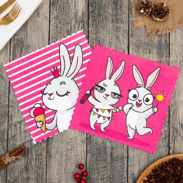 Набор салфеток для уборки Доляна «Зайки» 20×20 см-2 шт, микрофибра