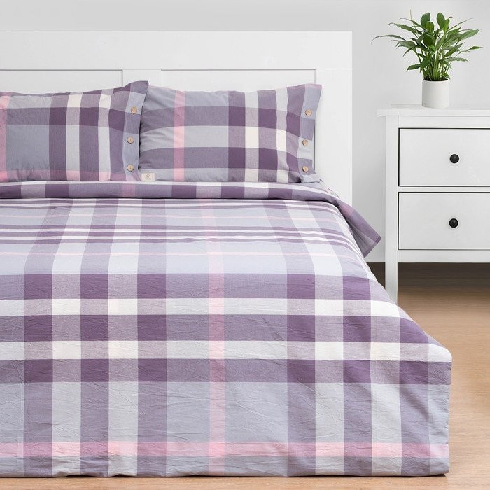 Постельное бельё Этель Евро «Клетка» 200×220 см, 220×240 см, 50×70−2шт, 100% жатый хлопок, 140гр/м2
