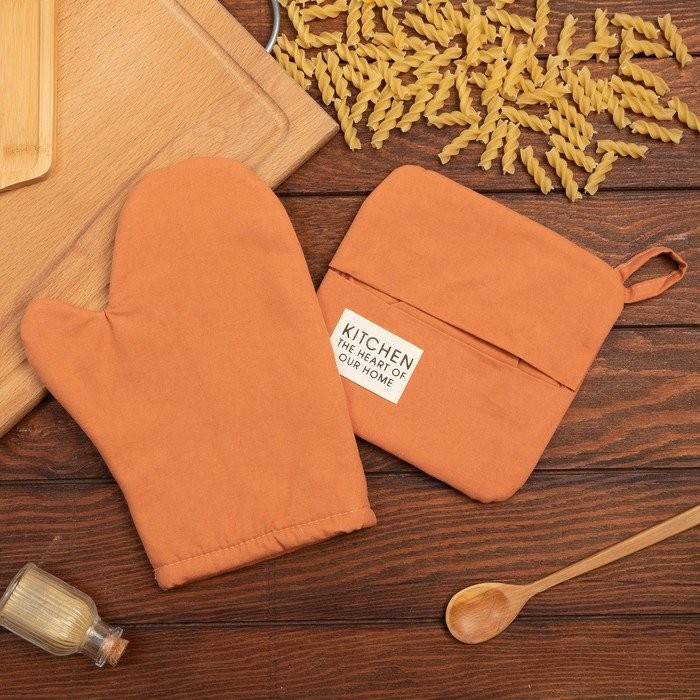 Набор кух. Этель Kitchen, цв. оранжевый, варежка-прихватка 18×29 см, прихватка 19×19 см