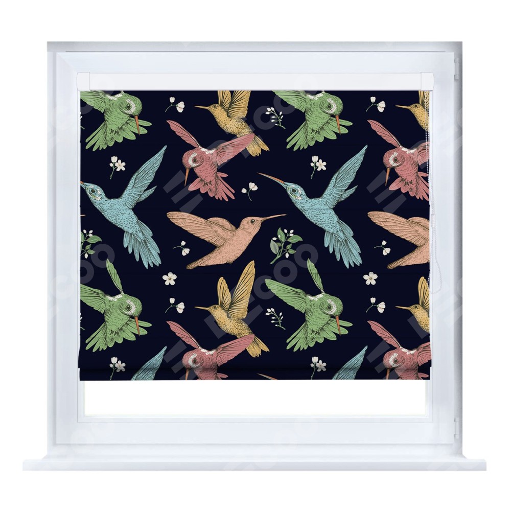 Римская штора производителя «Cortin», устанавливается на створку окна, пошита из ткани блэкаут с нанесением сублимационной печати «Птицы и цветы». Штора шьётся по индивидуальным размерам, для данного типа римской шторы возможная ширина от 35 до 150 см., высота до 250 см.