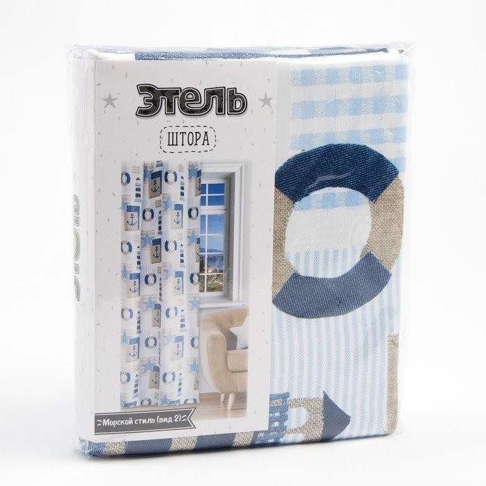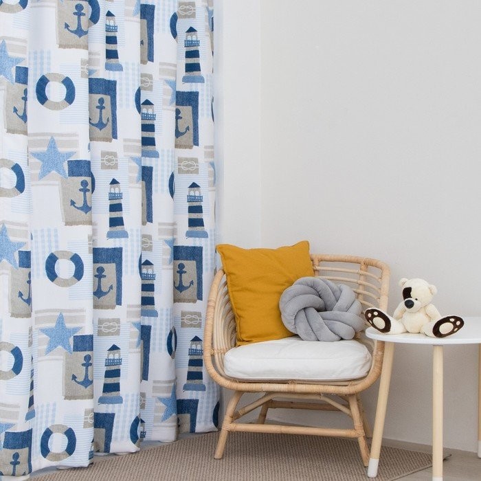Портьера Этель «Морской стиль», цвет синий, 110×260 см, блэкаут, 100% полиэстер