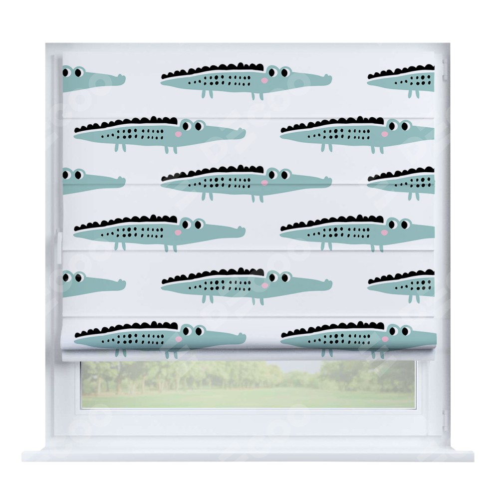 Римская штора производителя «Cortin», устанавливается на створку окна, пошита из ткани блэкаут с нанесением сублимационной печати «Мистер Крок». Штора шьётся по индивидуальным размерам, для данного типа римской шторы возможная ширина от 35 до 150 см., высота до 250 см.