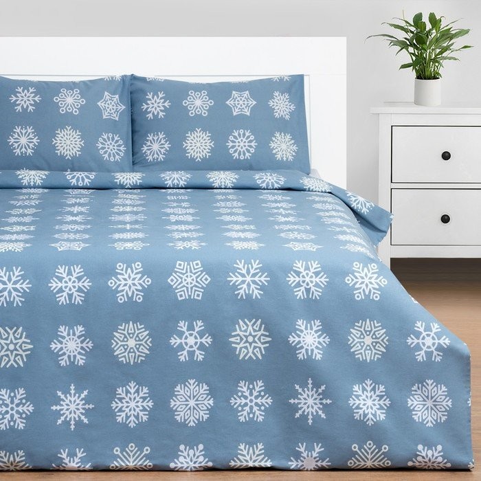 Комплект: пододеяльник и 2 наволочки «Снежинки» 200×215 см, 50×70 см — 2 шт, 100% хлопок