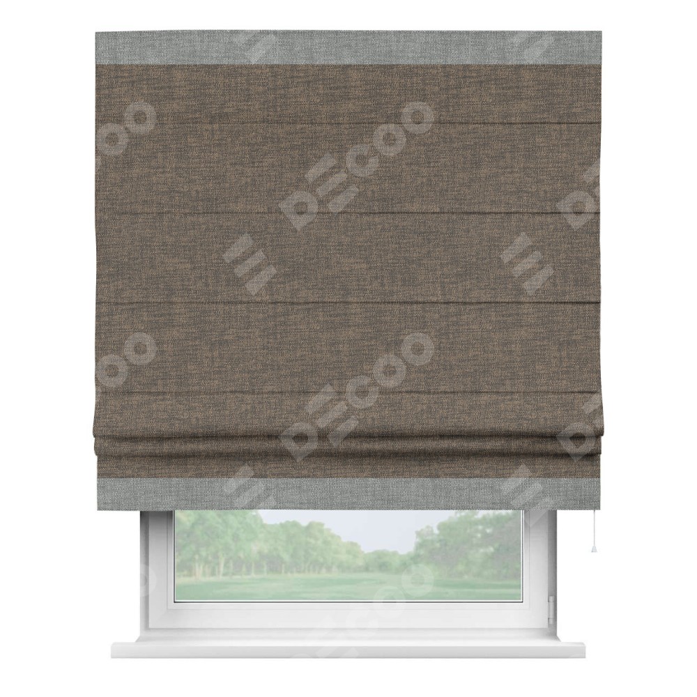 Римская штора «Кортин» с кантом Горизонт, для проема, ткань рогожка димаут, коричневый
