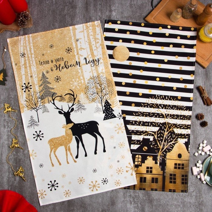 Набор полотенец Этель «Золотой город» 40×67 см — 2 шт, 100% хл, саржа 190 гр/м2