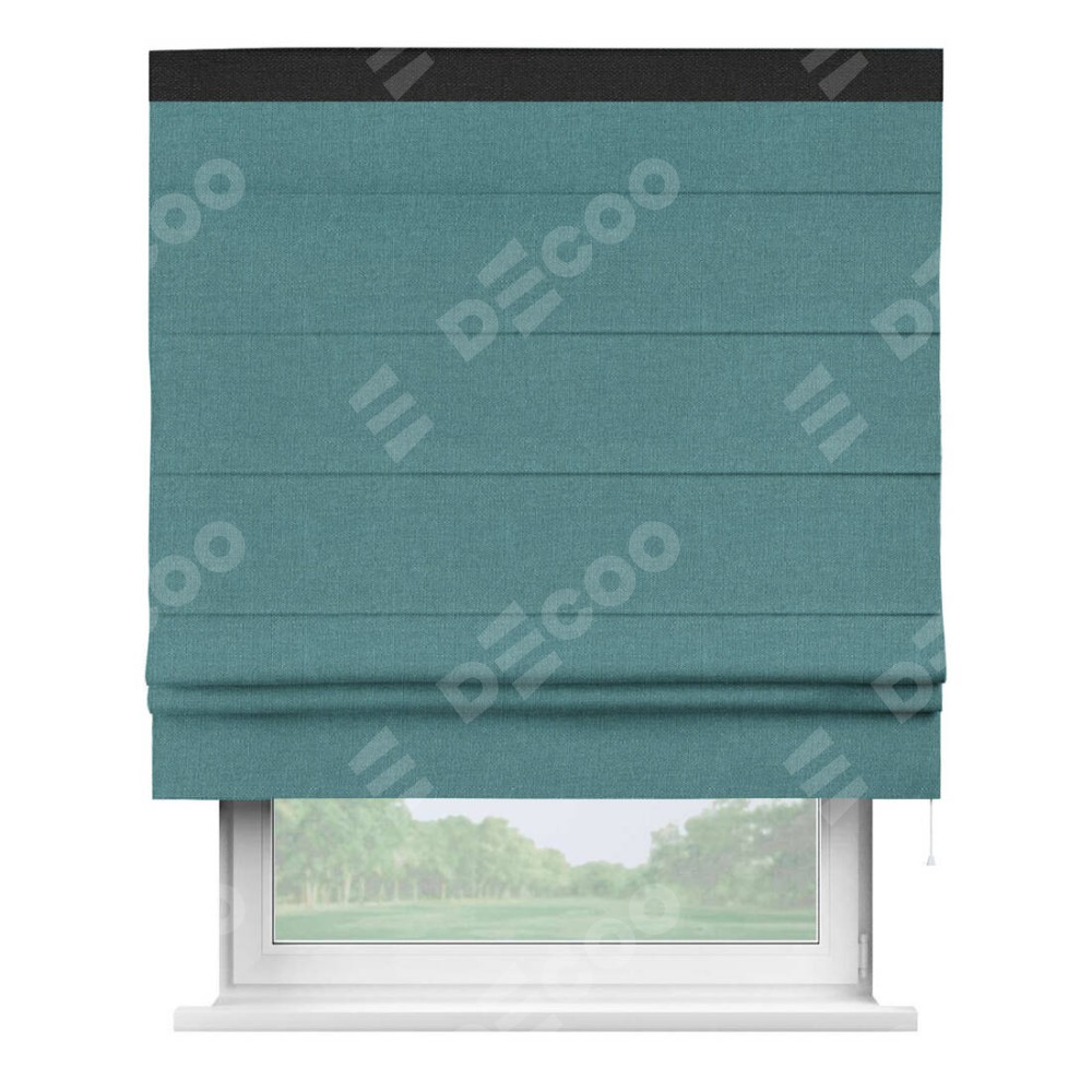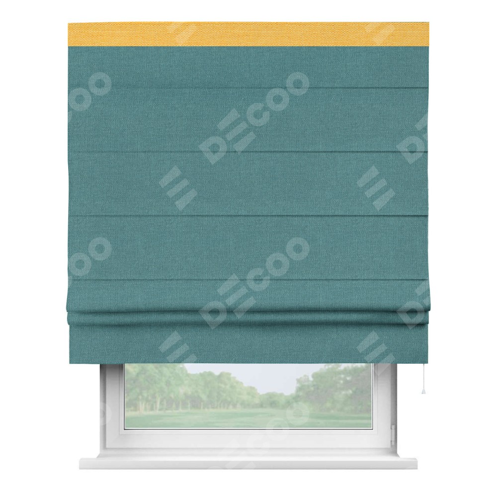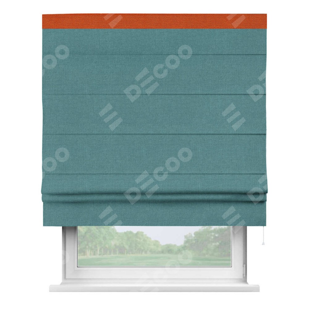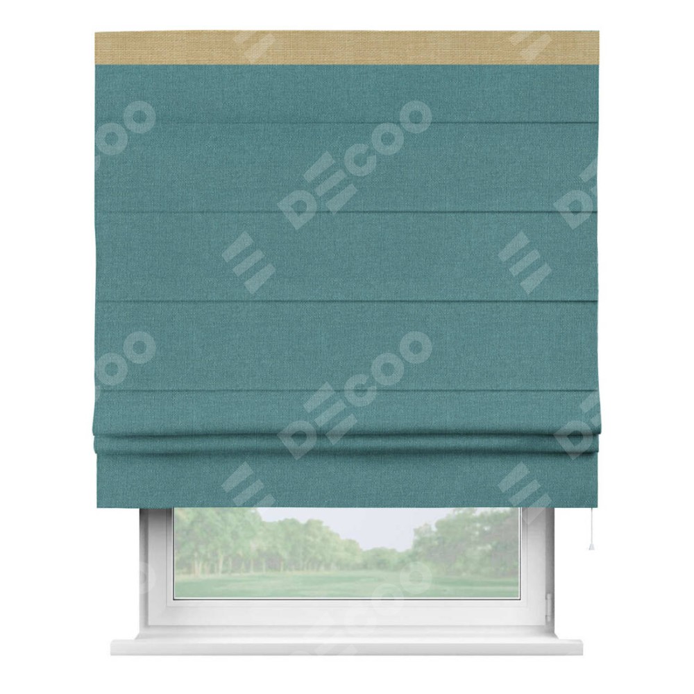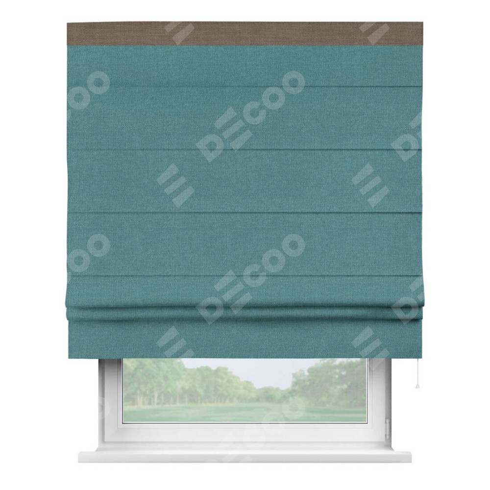 Римская штора «Кортин» с кантом Кинг, для проема, ткань лён бирюзовый