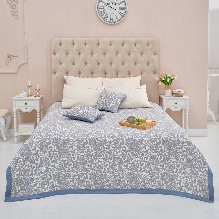 Покрывало хлопковое Этель «Узоры» 150×240 см, цвет серый, 100% хлопок, 300гр/м2