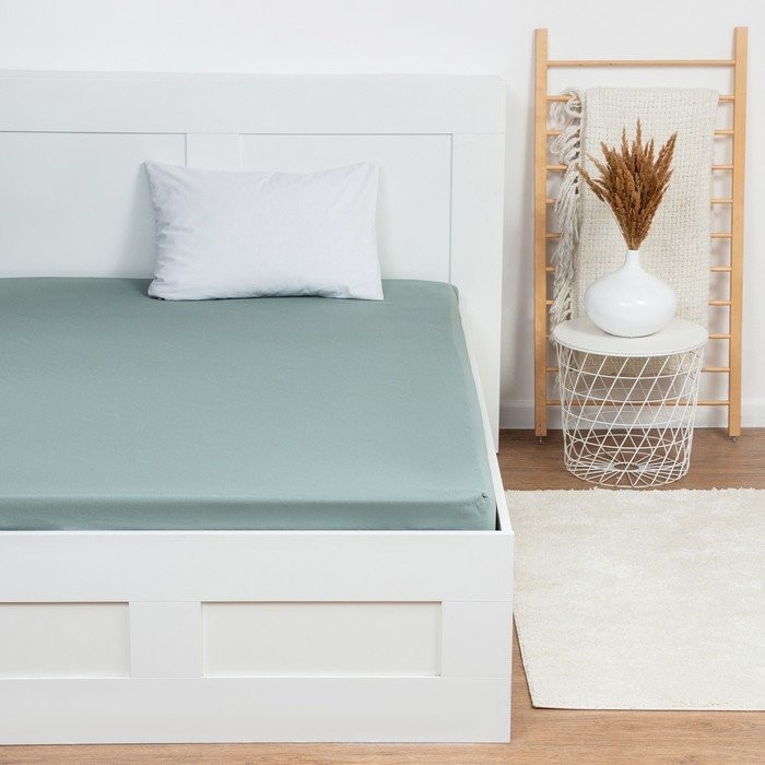 Простыня на резинке Этель 160х200×25, цвет серо-зелёный, 100% хлопок, бязь 125г/м2