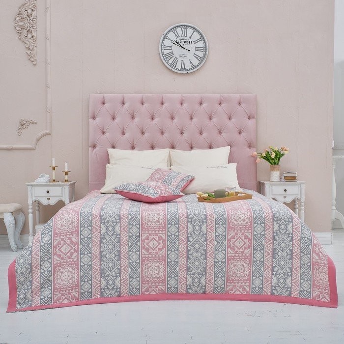 Покрывало хлопковое Этель «Инди» 150×240 см, цвет серо-розовый,100% хлопок, 300гр/м2