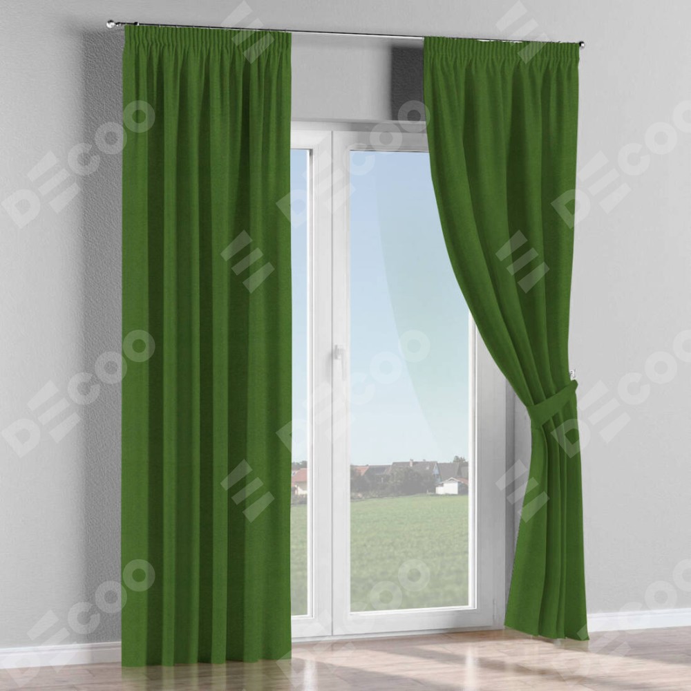Комплект прямых штор, от производителя «Cortin», пошиты из ткани блэкаут однотонный зелёный перламутр, артикул ткани 81859п. С изнаночной стороны в верхней части штор пристрачивается шторная лента с декоративными складками «Карандаш». Для создания элегантных складок прямые шторы шьются по стандарту с коэффициентом 1:2 (на 100 см. ширины проёма 200 см. ширины ткани).