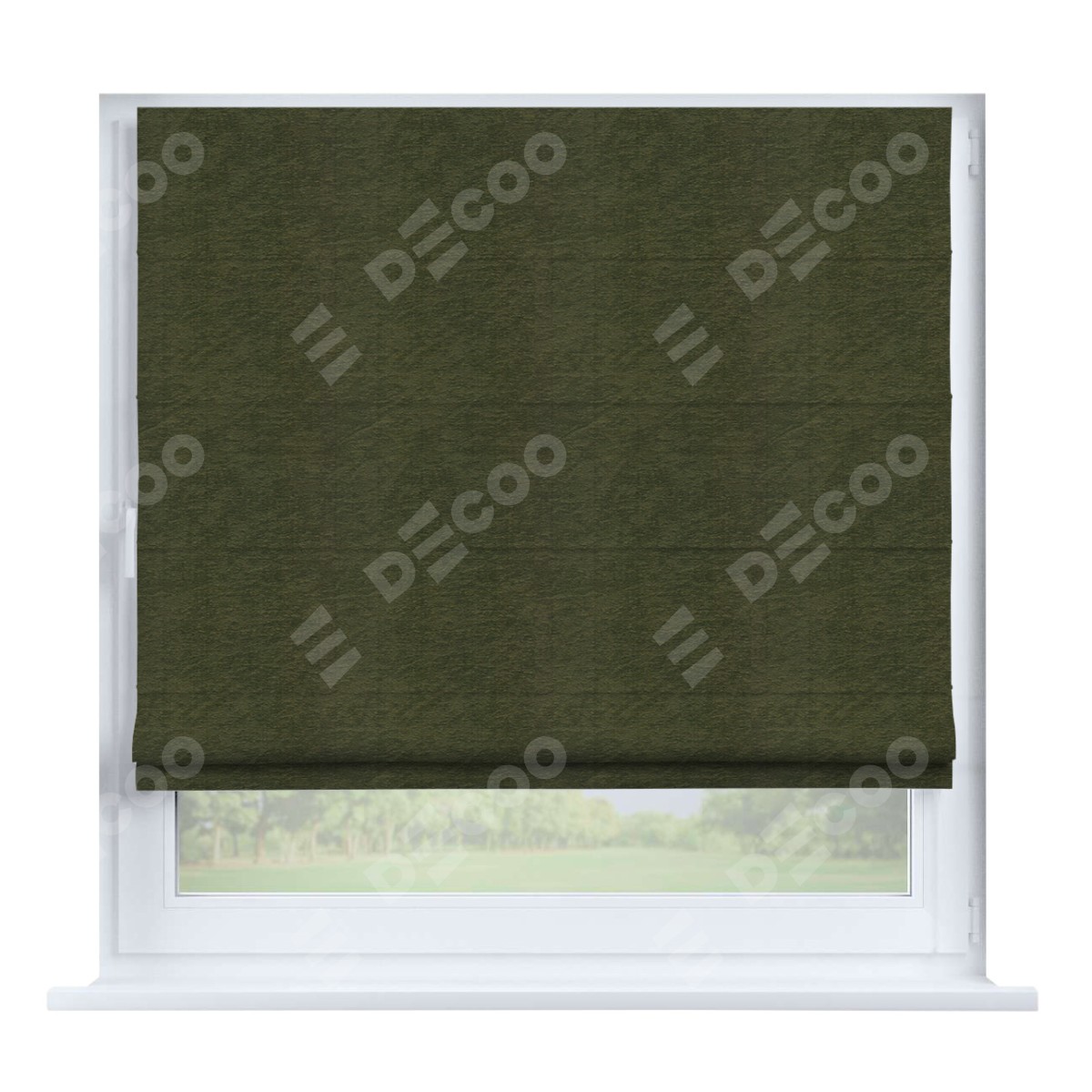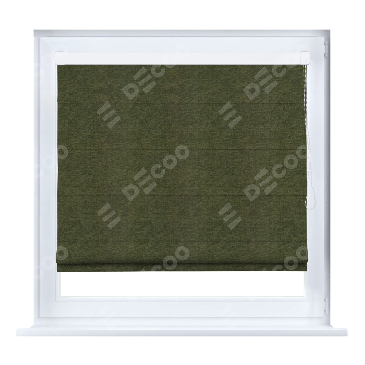 Римская штора производителя «Cortin», устанавливается на створку окна, пошита из ткани софт однотонный зелёный, артикул 33110. Штора шьётся по индивидуальным размерам, для данного типа римской шторы возможная ширина от 35 до 150 см., высота до 250 см.