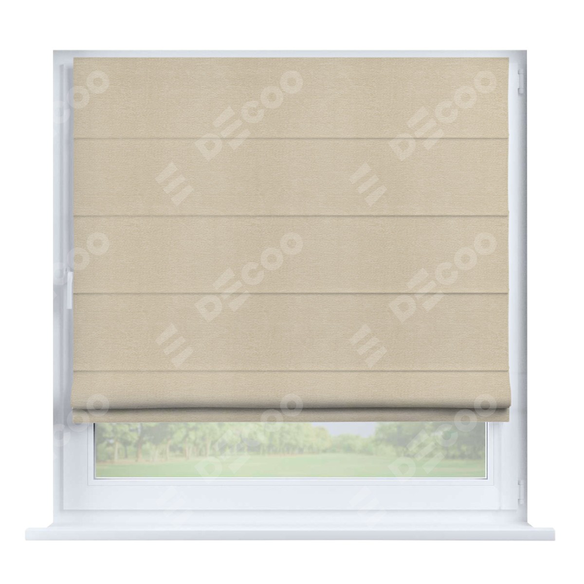 Римская штора производителя «Cortin», устанавливается на створку окна, пошита из ткани софт однотонный бежевый лайт, артикул 33100. Штора шьётся по индивидуальным размерам, для данного типа римской шторы возможная ширина от 35 до 150 см., высота до 250 см.