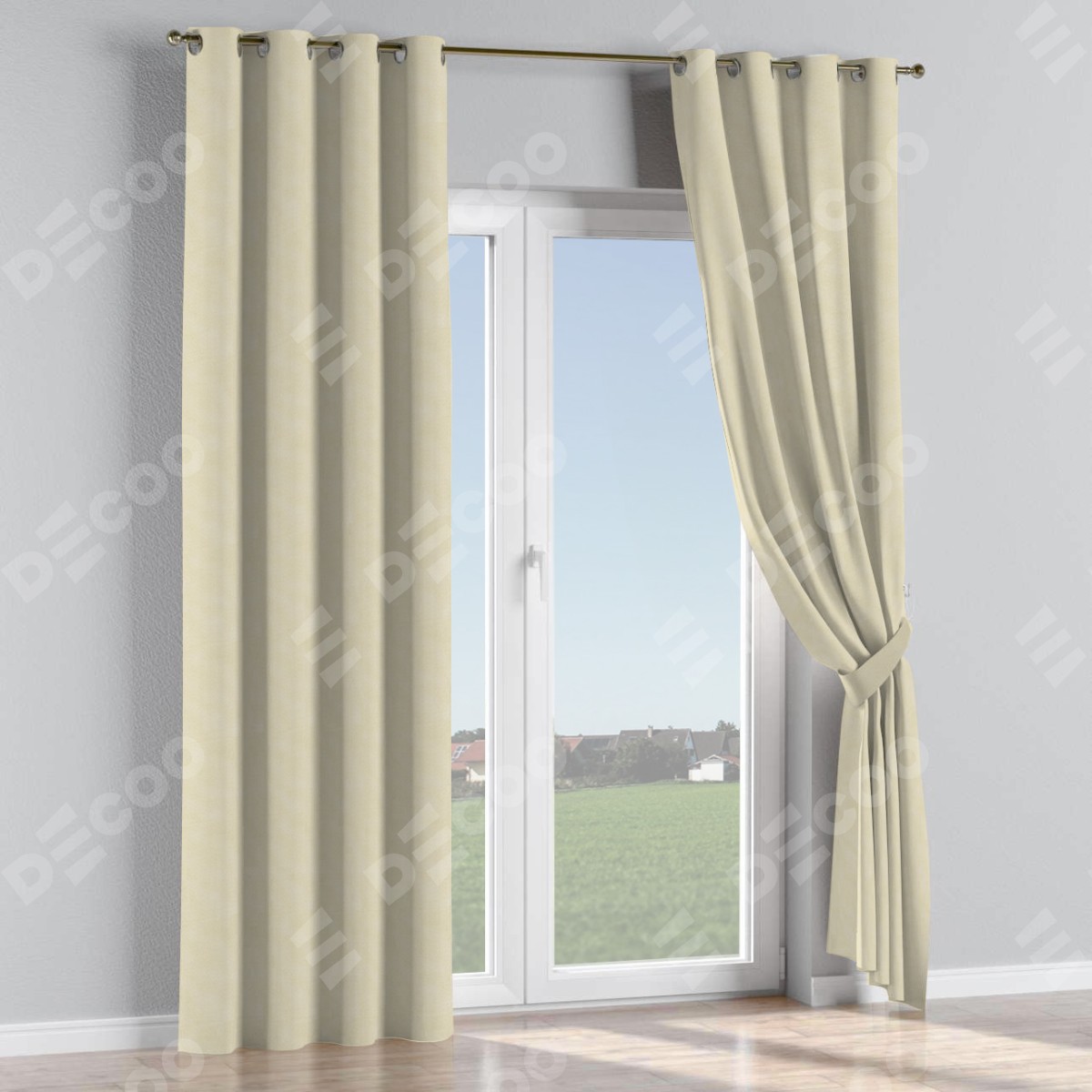 Комплект прямых штор, от производителя «Cortin», пошиты из ткани лён димаут бежевый, артикул ткани 83023. Данная модель пошита на люверсах, комплектуется на выбор круглым карнизом и подходит для монтажа на стену или потолок. Прямые шторы на люверсах шьются по стандарту с коэффициентом 1/2 (на 100 см. ширины проёма 200 см. ширины ткани), отличительным преимуществом данной модели является простой способ монтажа. Достаточно повесить ее на трубу и штора готова!