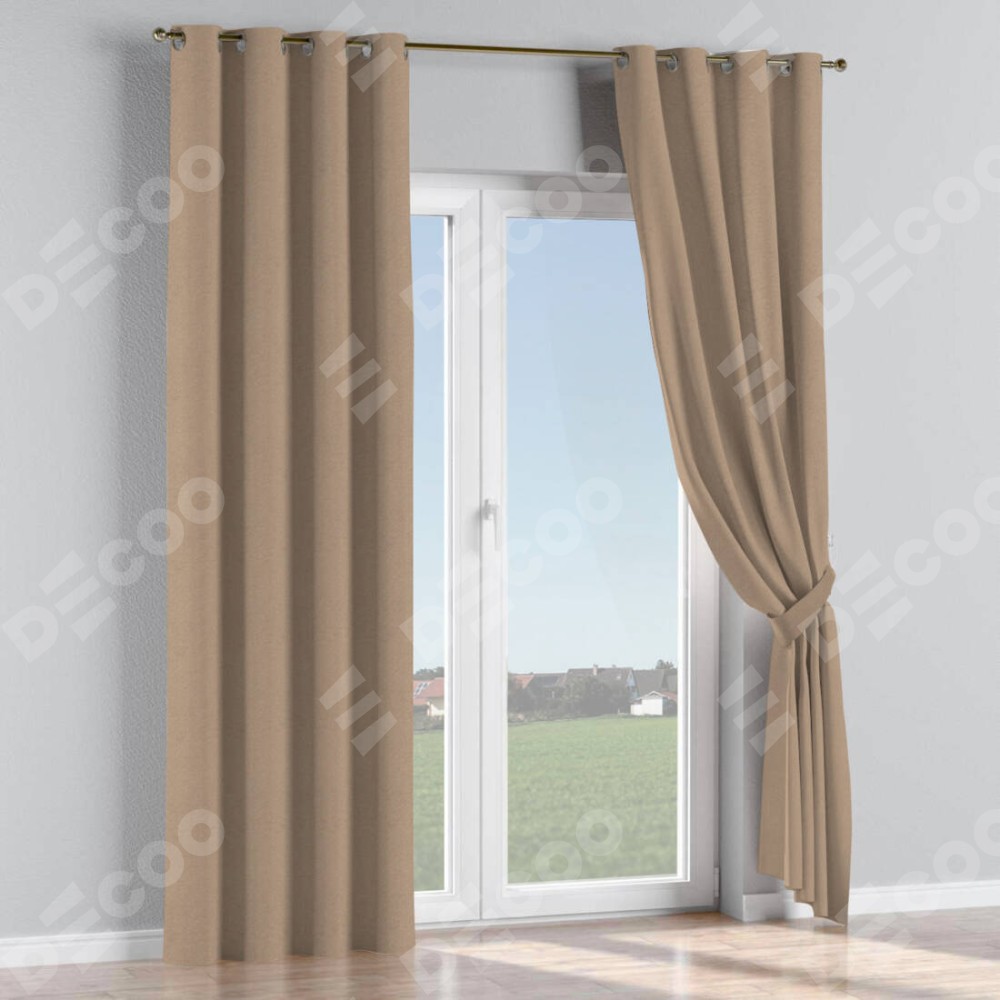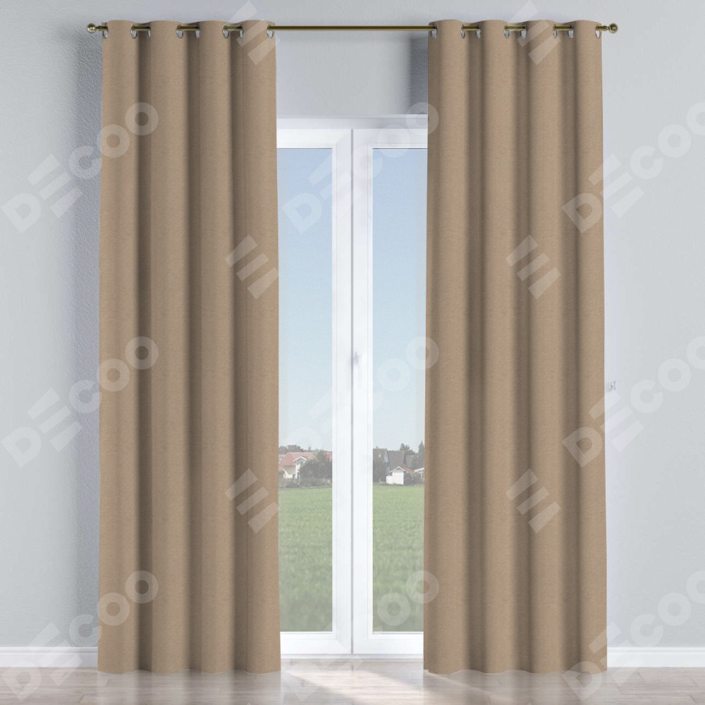 Комплект прямых штор, от производителя «Cortin», пошиты из ткани лён димаут светло-бежевый, артикул ткани 00002. Данная модель пошита на люверсах, комплектуется на выбор круглым карнизом и подходит для монтажа на стену или потолок. Прямые шторы на люверсах шьются по стандарту с коэффициентом 1/2 (на 100 см. ширины проёма 200 см. ширины ткани), отличительным преимуществом данной модели является простой способ монтажа. Достаточно повесить ее на трубу и штора готова!