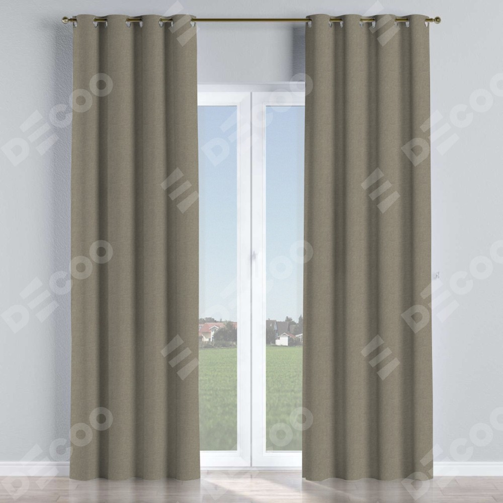 Комплект прямых штор, от производителя «Cortin», пошиты из ткани лён димаут серо-зелёный, артикул ткани 00003. Данная модель пошита на люверсах, комплектуется на выбор круглым карнизом и подходит для монтажа на стену или потолок. Прямые шторы на люверсах шьются по стандарту с коэффициентом 1/2 (на 100 см. ширины проёма 200 см. ширины ткани), отличительным преимуществом данной модели является простой способ монтажа. Достаточно повесить ее на трубу и штора готова!
