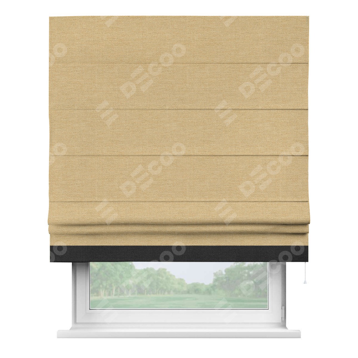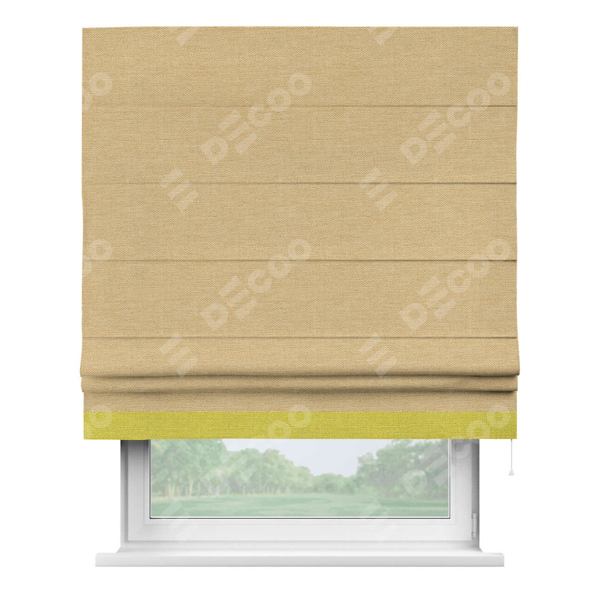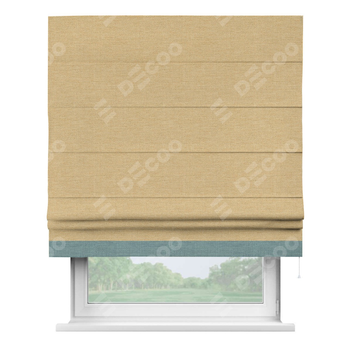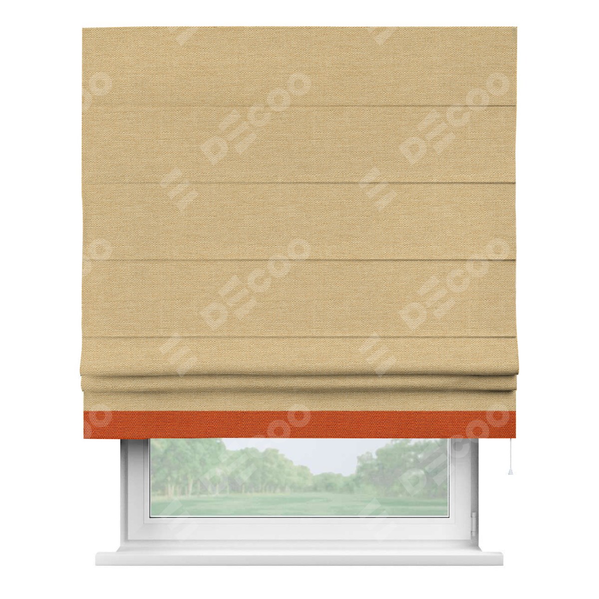 Римская штора производителя «Cortin», используется для проёма, пошита из ткани лён темно-бежевый, артикул 53433. Отделка шторы кантом «Джестер», ткань для канта используется из льна разной расцветки на выбор. Имеет универсальный механизм и подходит для монтажа: на потолок, на стену и в нишу.