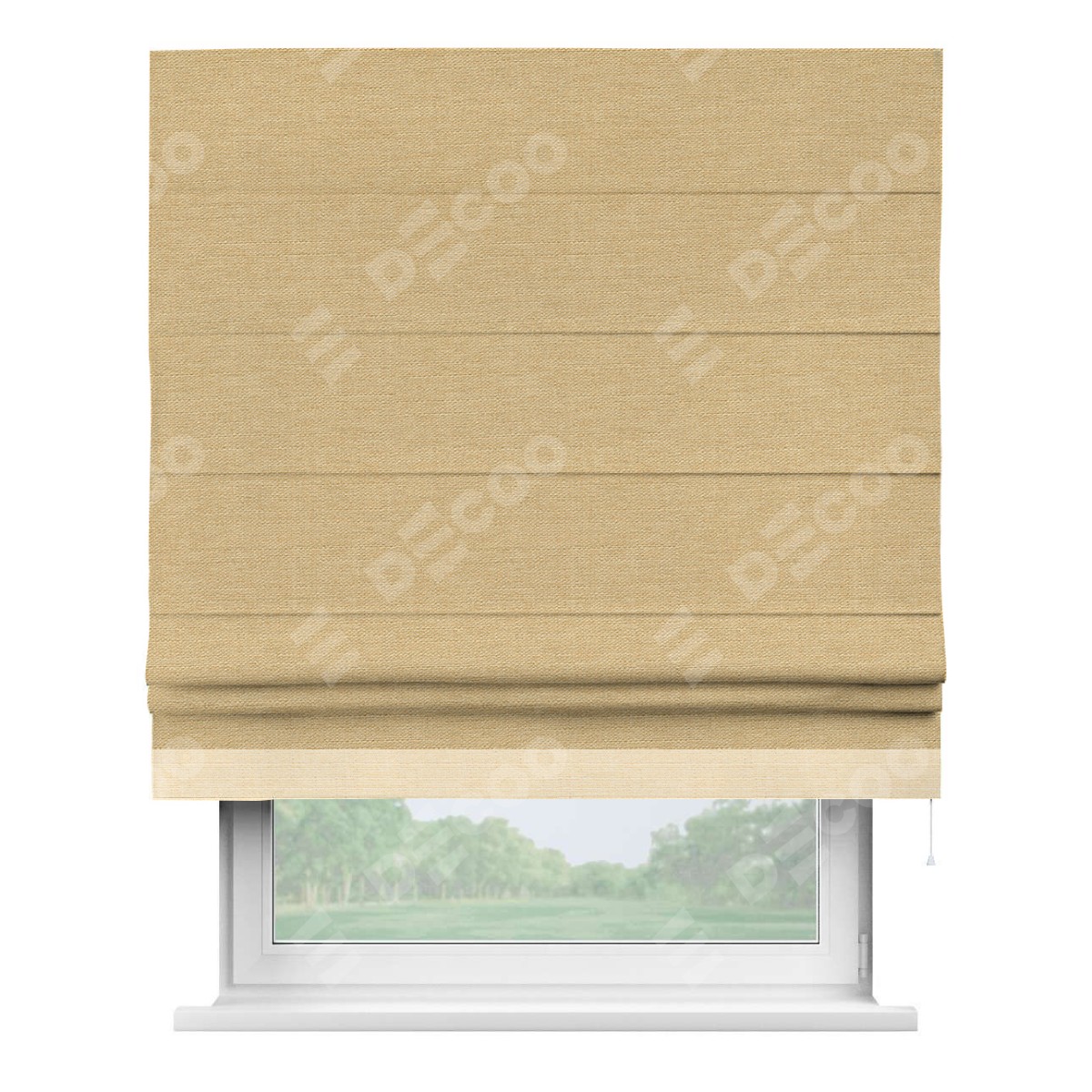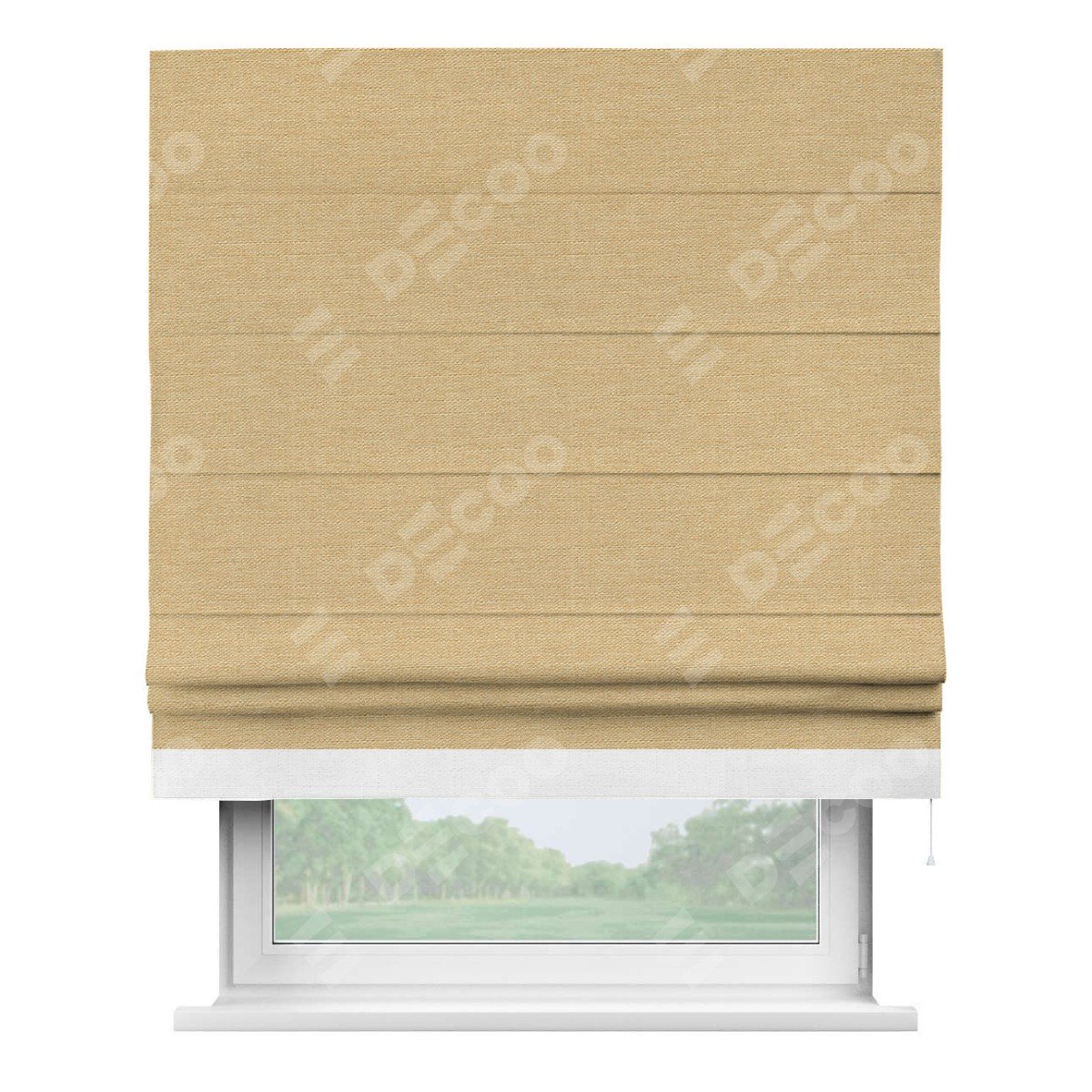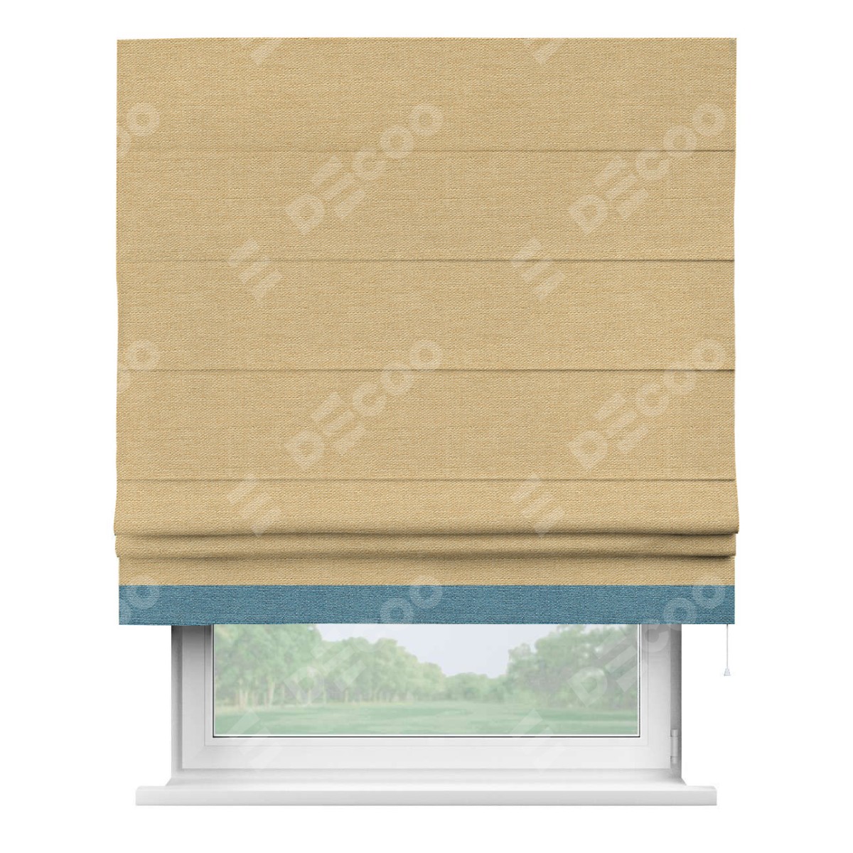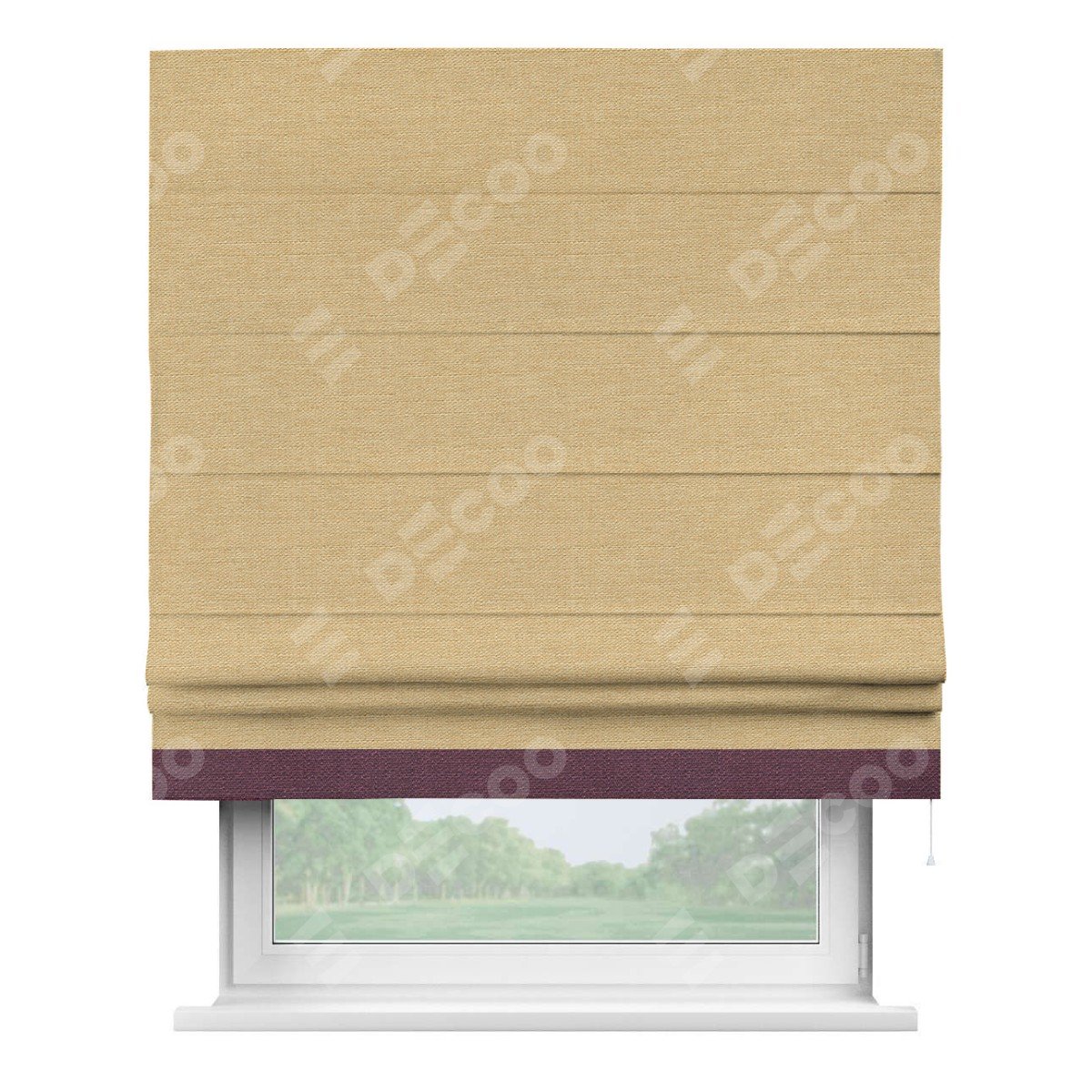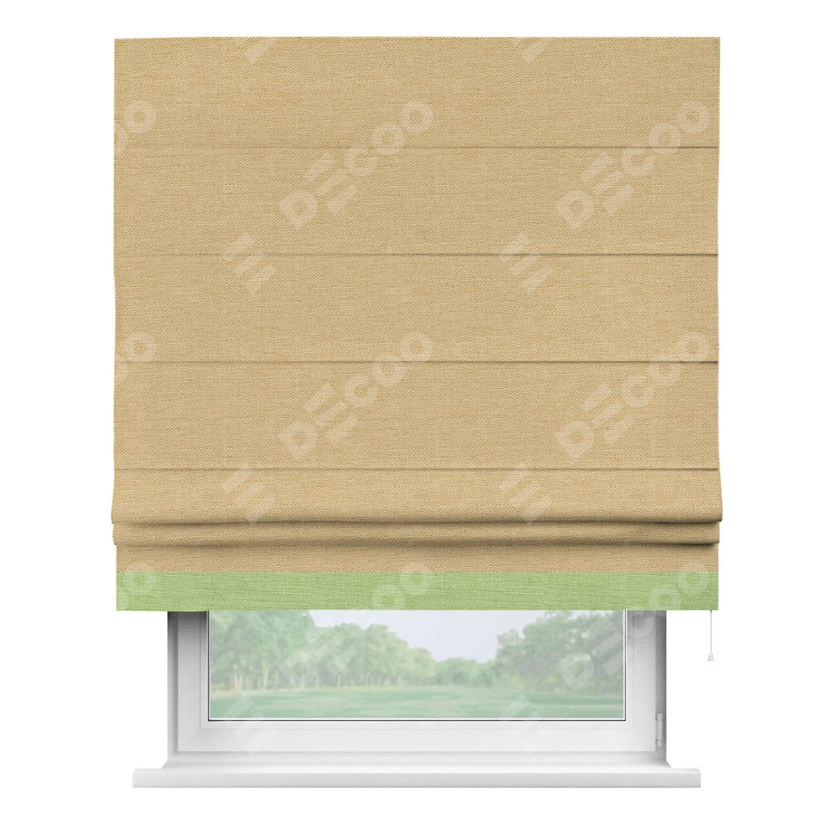 Римская штора производителя «Cortin», используется для проёма, пошита из ткани лён темно-бежевый, артикул 53433. Отделка шторы кантом «Джестер», ткань для канта используется из льна разной расцветки на выбор. Имеет универсальный механизм и подходит для монтажа: на потолок, на стену и в нишу.