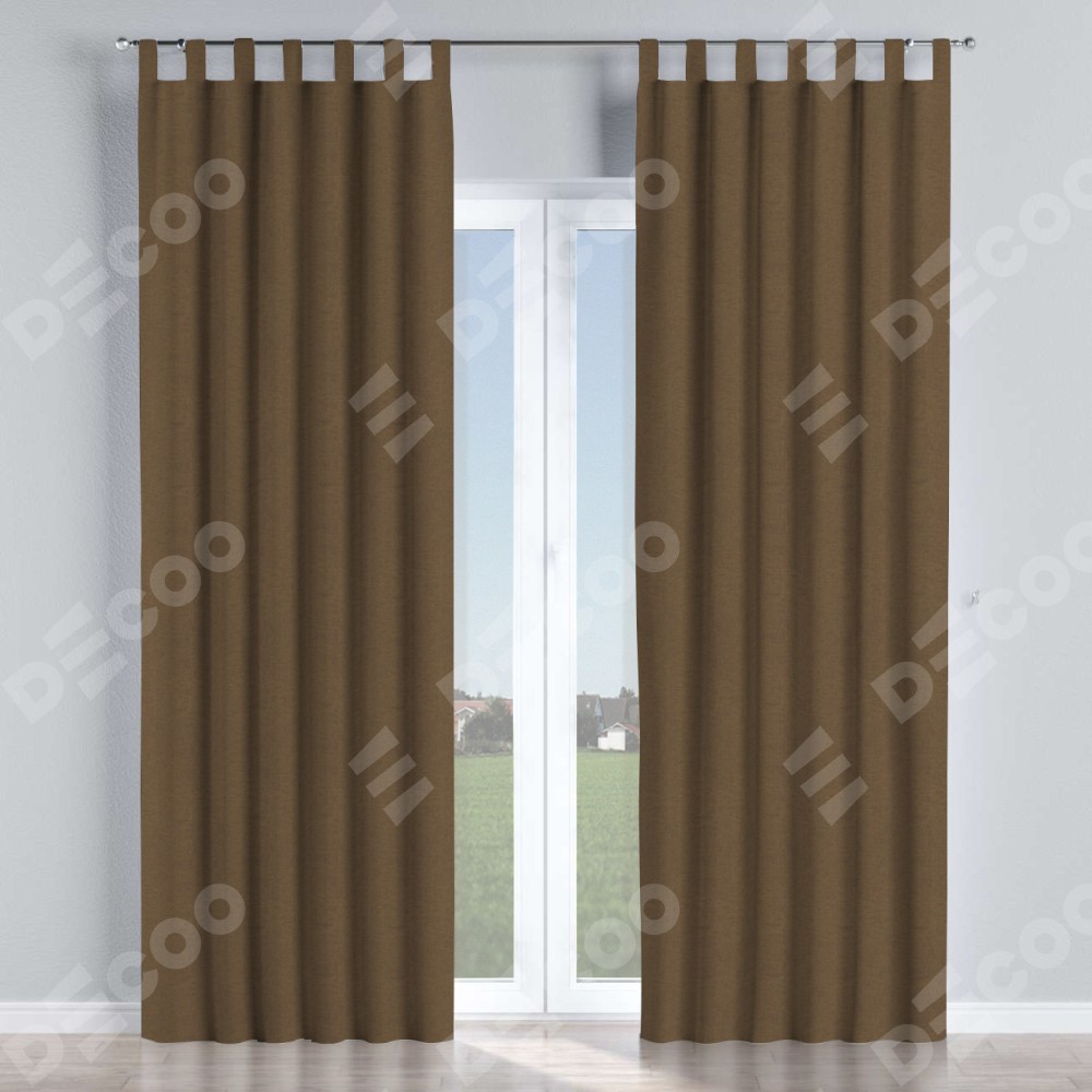 Комплект прямых штор, от производителя «Cortin», пошиты из ткани лён димаут тёмно-коричневый, артикул ткани 83030. Данная модель пошита на петлях, комплектуется на выбор круглым карнизом и подходит для монтажа на стену или потолок. Прямые шторы на петлях шьются по стандарту с коэффициентом 1/2 (на 100 см. ширины проёма 200 см. ширины ткани), отличительным преимуществом данной модели является простой способ монтажа. Достаточно повесить ее на трубу и штора готова!