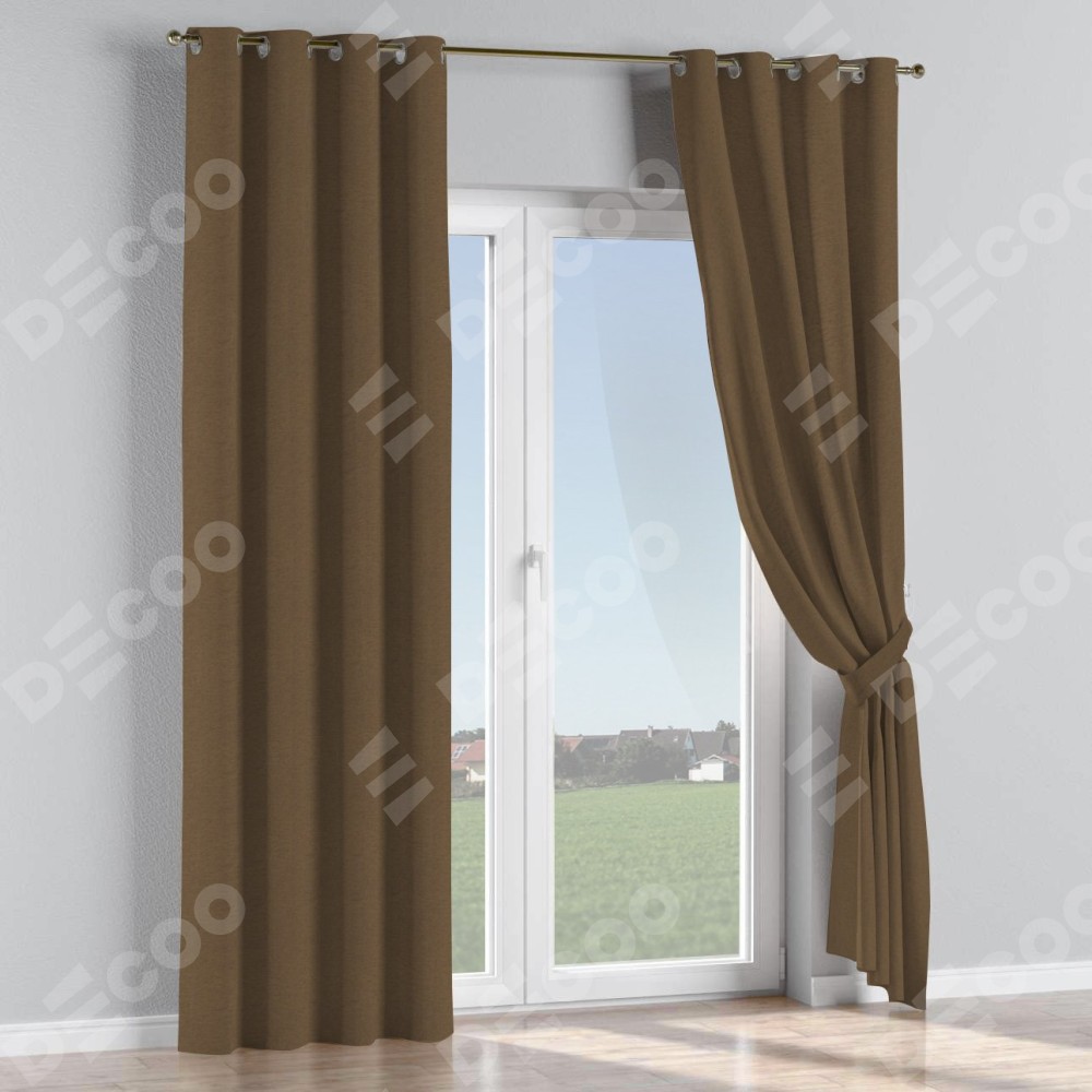 Комплект прямых штор, от производителя «Cortin», пошиты из ткани лён димаут тёмно-коричневый, артикул ткани 83030. Данная модель пошита на люверсах, комплектуется на выбор круглым карнизом и подходит для монтажа на стену или потолок. Прямые шторы на люверсах шьются по стандарту с коэффициентом 1/2 (на 100 см. ширины проёма 200 см. ширины ткани), отличительным преимуществом данной модели является простой способ монтажа. Достаточно повесить ее на трубу и штора готова!