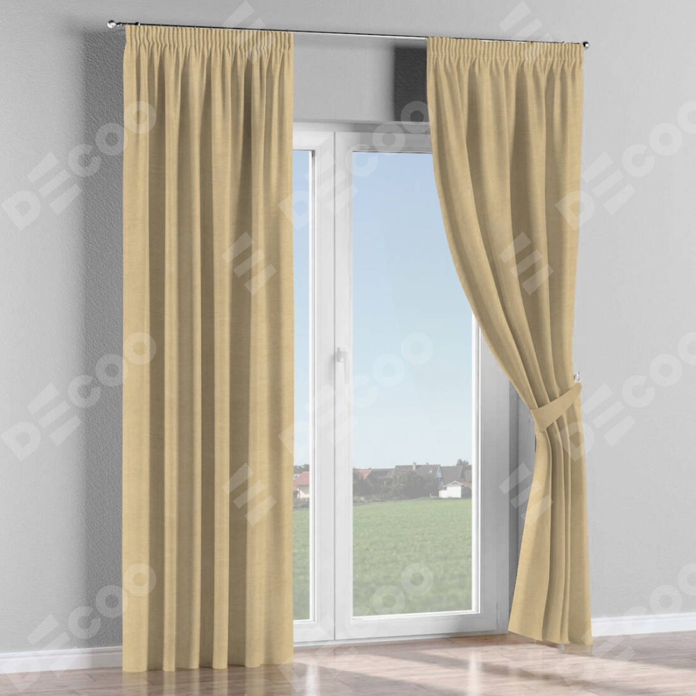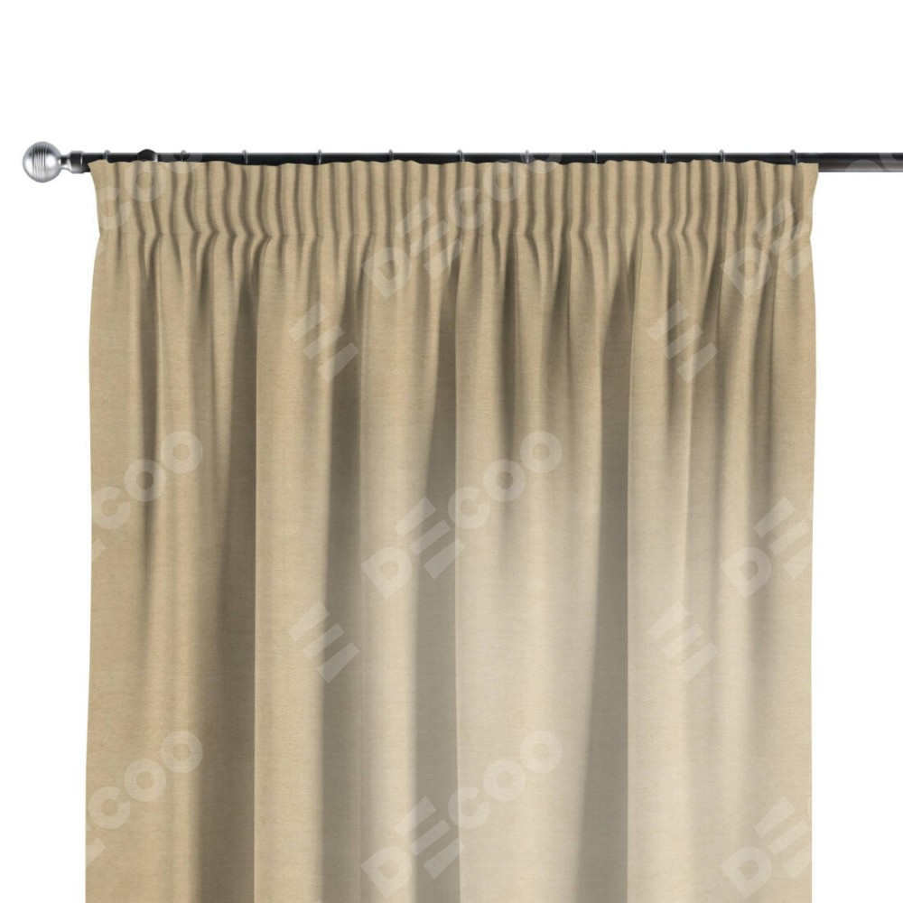 Комплект прямых штор, от производителя «Cortin», пошиты из ткани вельвет бежевый, артикул ткани 85538. С изнаночной стороны в верхней части штор пристрачивается шторная лента с декоративными складками «Карандаш». Для создания элегантных складок прямые шторы шьются по стандарту с коэффициентом 1:2 (на 100 см. ширины проёма 200 см. ширины ткани).