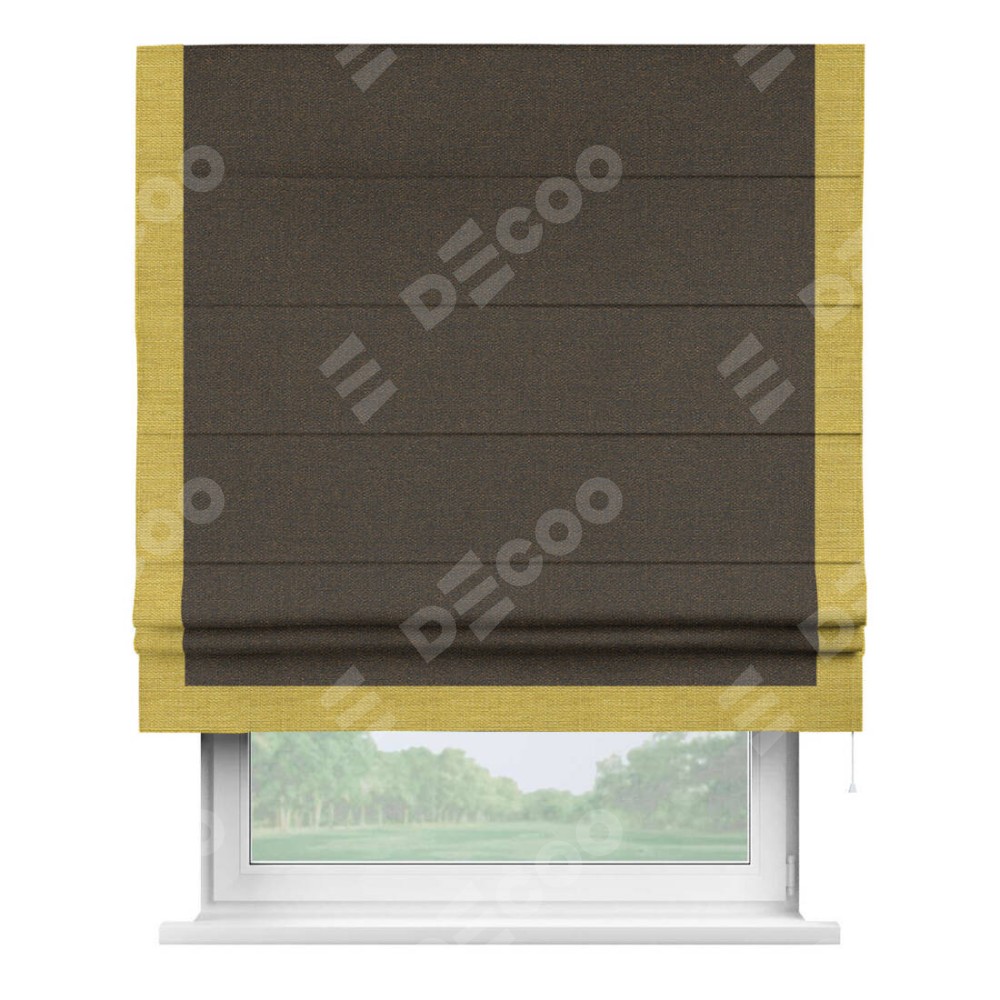 Римская штора производителя «Cortin», используется для проёма, пошита из ткани лён темно-коричневый, артикул 53444. Отделка шторы кантом «Виктория», ткань для канта используется из льна разной расцветки на выбор. Имеет универсальный механизм и подходит для монтажа: на потолок, на стену и в нишу.