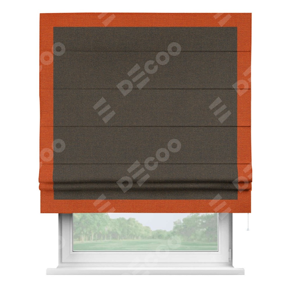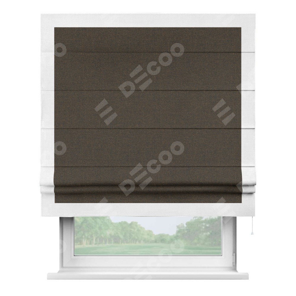 Римская штора «Кортин» с кантом Чесс, для проема, ткань лён темно-коричневый