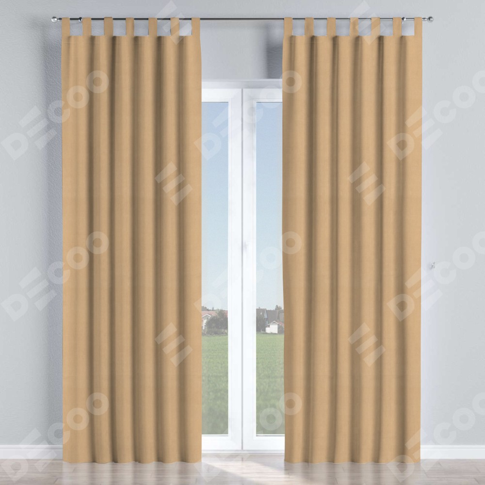 Комплект прямых штор, от производителя «Cortin», пошиты из ткани вельвет песочный, артикул ткани 17740. Данная модель пошита на петлях, комплектуется на выбор круглым карнизом и подходит для монтажа на стену или потолок. Прямые шторы на петлях шьются по стандарту с коэффициентом 1/2 (на 100 см. ширины проёма 200 см. ширины ткани), отличительным преимуществом данной модели является простой способ монтажа. Достаточно повесить ее на трубу и штора готова!