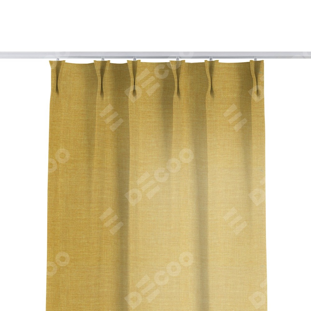 Комплект прямых штор, от производителя «Cortin», пошиты из ткани лён горчичный, артикул ткани 74740. С изнаночной стороны в верхней части штор пристрачивается шторная лента с декоративными складками «Кустик». Для создания элегантных складок прямые шторы шьются по стандарту с коэффициентом 1:2 (на 100 см. ширины проёма 200 см. ширины ткани).