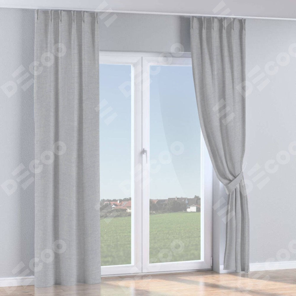 Комплект прямых штор, от производителя «Cortin», пошиты из ткани лён серый, артикул ткани 7440. С изнаночной стороны в верхней части штор пристрачивается шторная лента с декоративными складками «Кустик». Для создания элегантных складок прямые шторы шьются по стандарту с коэффициентом 1:2 (на 100 см. ширины проёма 200 см. ширины ткани).