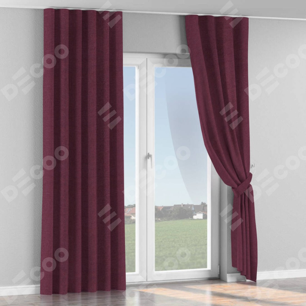Комплект прямых штор, от производителя «Cortin», пошиты из ткани лён фиолетовый, артикул ткани 85907. С изнаночной стороны в верхней части штор пристрачивается шторная лента с декоративными складками «Волна». Для создания элегантных складок прямые шторы шьются по стандарту с коэффициентом 1:2 (на 100 см. ширины проёма 200 см. ширины ткани).