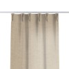 Комплект прямых штор, от производителя «Cortin», пошиты из ткани лён кашемир бежевый, артикул ткани 17206. С изнаночной стороны в верхней части штор пристрачивается шторная лента с декоративными складками «Кустик». Для создания элегантных складок прямые шторы шьются по стандарту с коэффициентом 1:2 (на 100 см. ширины проёма 200 см. ширины ткани).