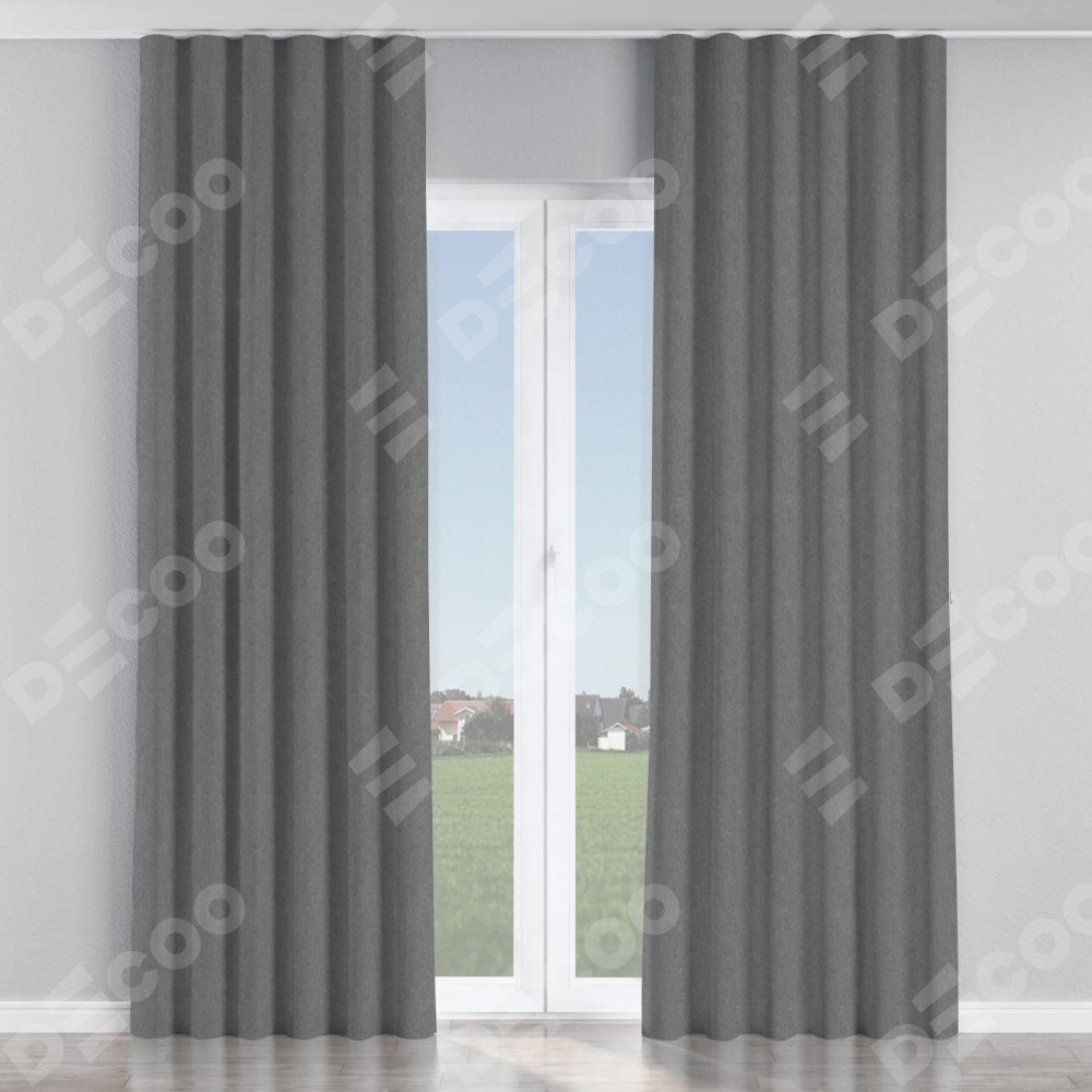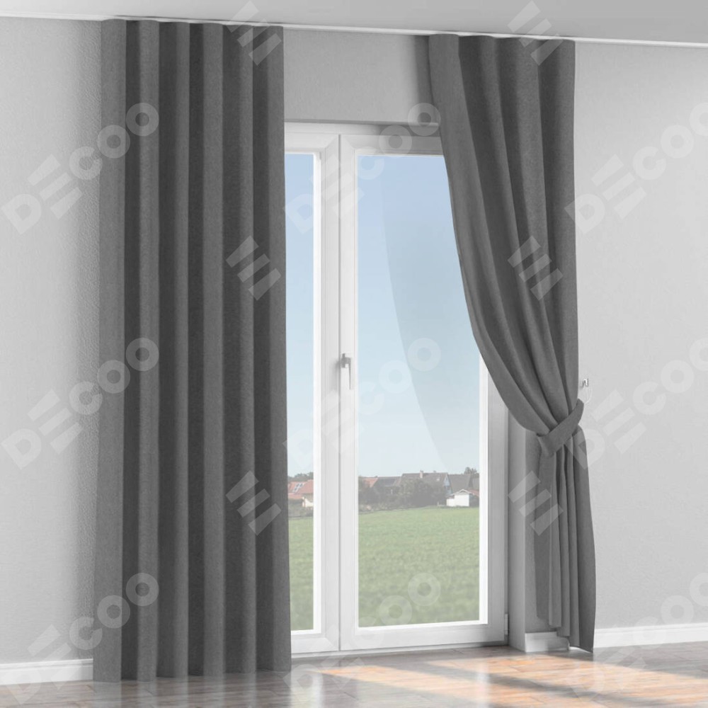Комплект прямых штор, от производителя «Cortin», пошиты из ткани софт однотонный серый, артикул ткани 70605. С изнаночной стороны в верхней части штор пристрачивается шторная лента с декоративными складками «Волна». Для создания элегантных складок прямые шторы шьются по стандарту с коэффициентом 1:2 (на 100 см. ширины проёма 200 см. ширины ткани).