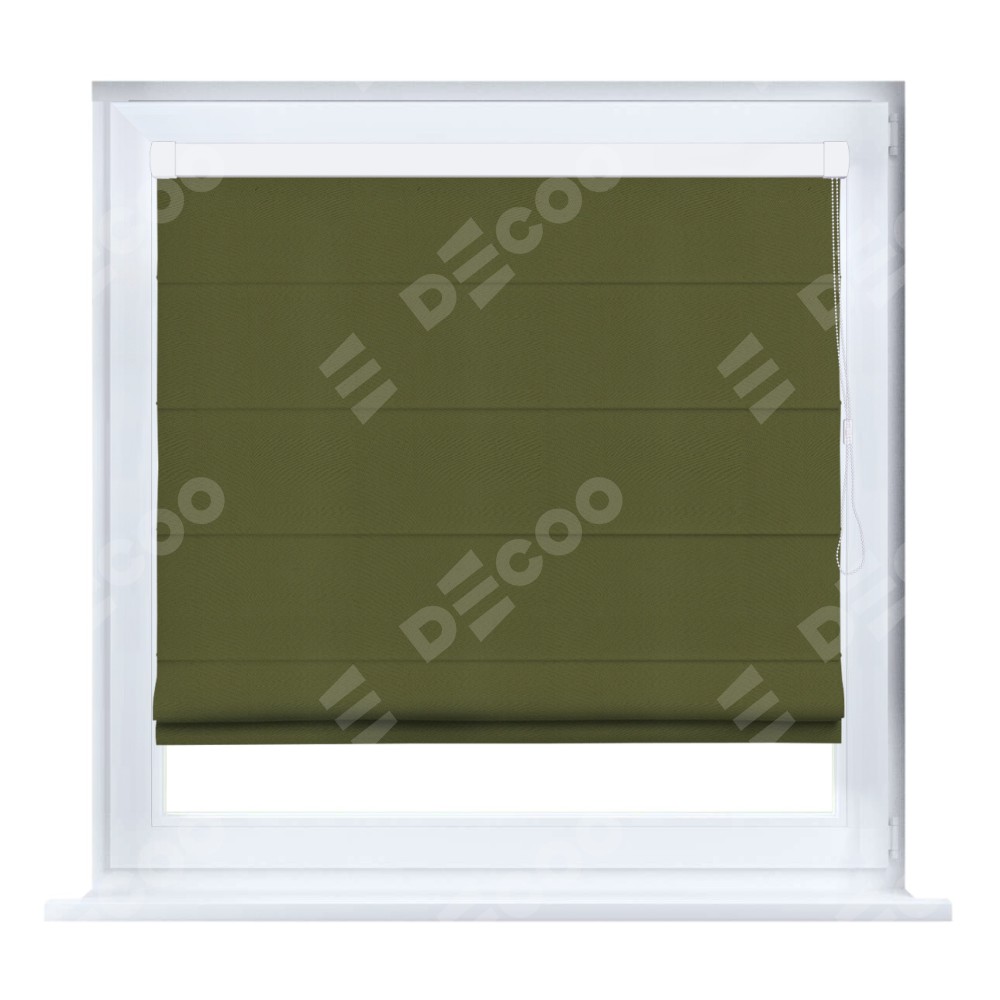 Римская штора производителя «Cortin», устанавливается на створку окна, пошита из ткани блэкаут однотонный зелёный, артикул 81859. Штора шьётся по индивидуальным размерам, для данного типа римской шторы возможная ширина от 35 до 150 см., высота до 250 см.