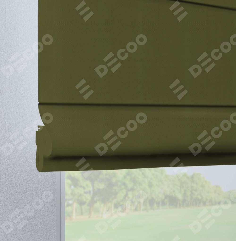 Римская штора производителя «Cortin», используется для проёма, пошита из ткани блэкаут однотонный зелёный, артикул ткани 81859. Данная модель пошита на петлях, комплектуется на выбор круглым карнизом и подходит для монтажа на стену. Римская штора на петлях имеет простую систему регулировки высоты, отличительным преимуществом данной модели является простой способ монтажа. Достаточно повесить ее на трубу и штора готова!