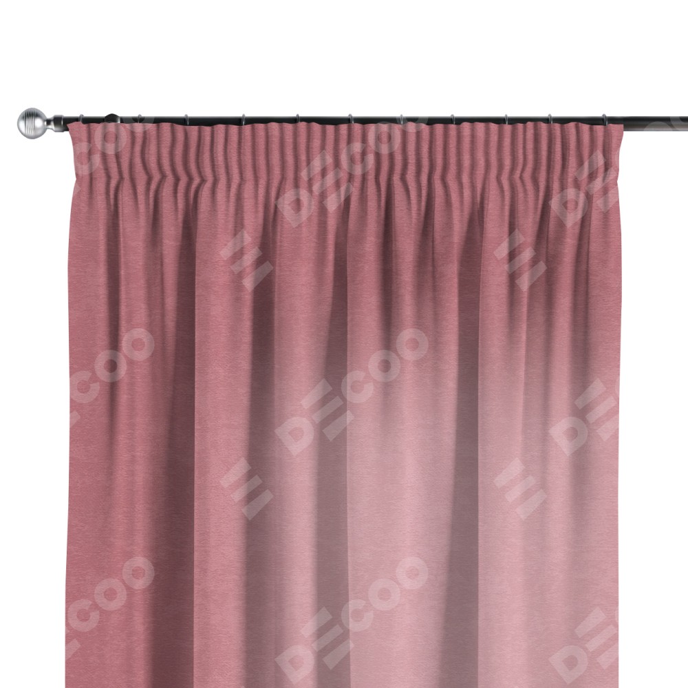 Комплект прямых штор, от производителя «Cortin», пошиты из ткани софт однотонный розовый, артикул ткани 42926. С изнаночной стороны в верхней части штор пристрачивается шторная лента с декоративными складками «Карандаш». Для создания элегантных складок прямые шторы шьются по стандарту с коэффициентом 1:2 (на 100 см. ширины проёма 200 см. ширины ткани).