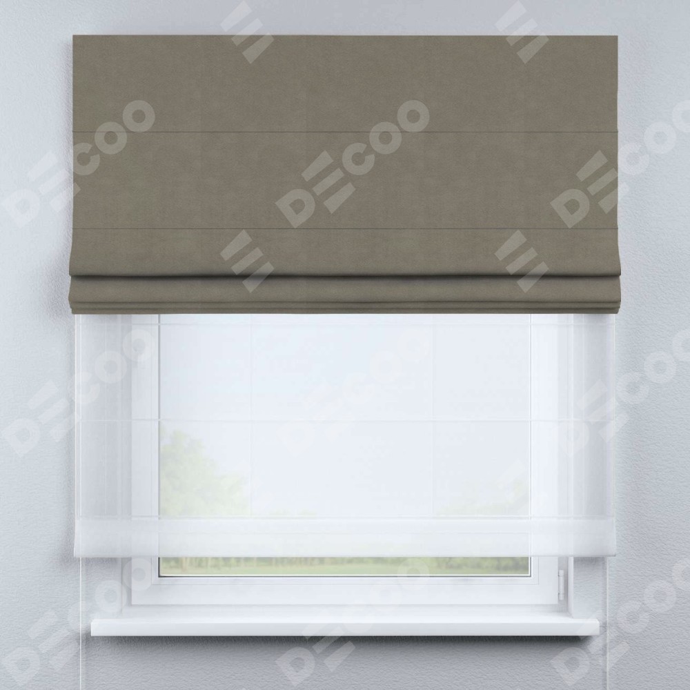 Римская штора день-ночь производителя «Cortin», используется для проёма, пошита из двух полотен, с лицевой стороны бархат ария артикул 31, вторая ткань тюль (по стандарту комплектуется тюль белого цвета артикул V-01). Имеет универсальный механизм и подходит для монтажа: на потолок, на стену и в нишу.