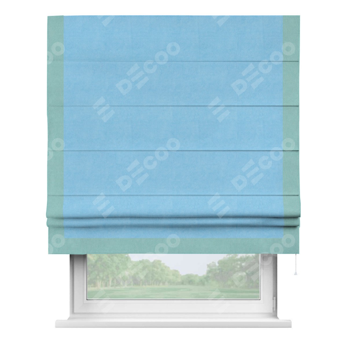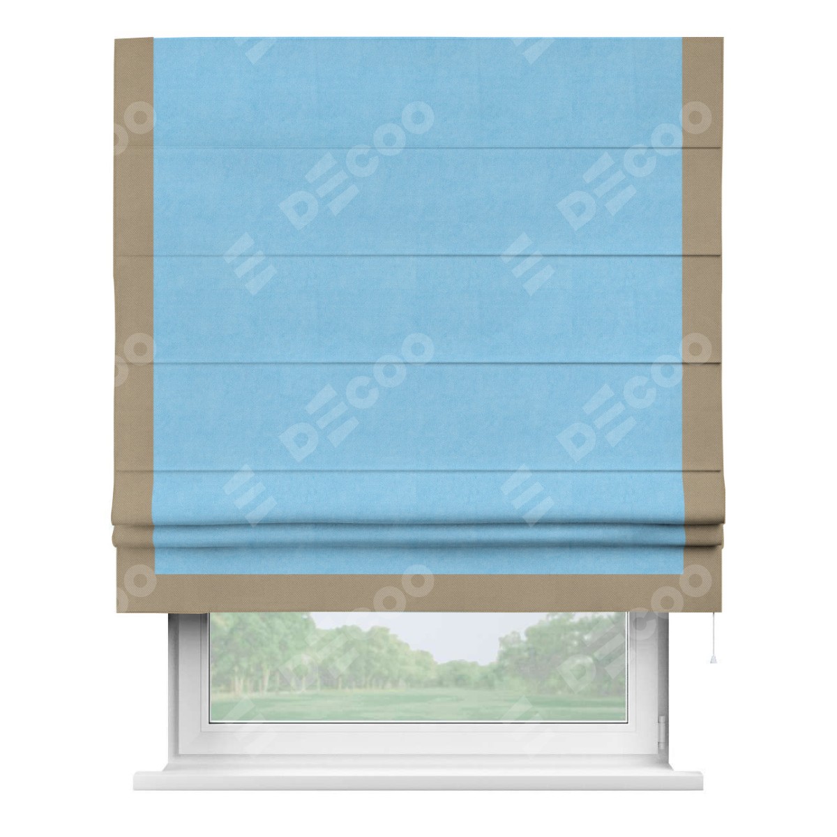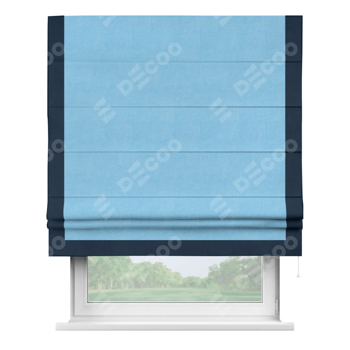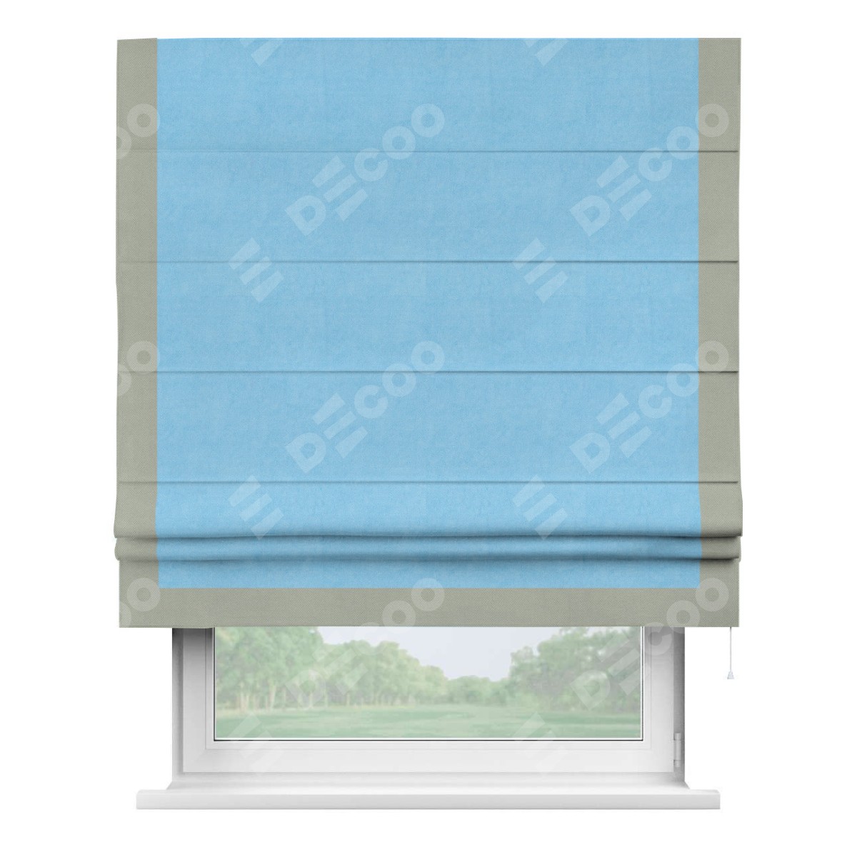 Римская штора «Кортин» с кантом Виктория, для проема, ткань вельвет голубой