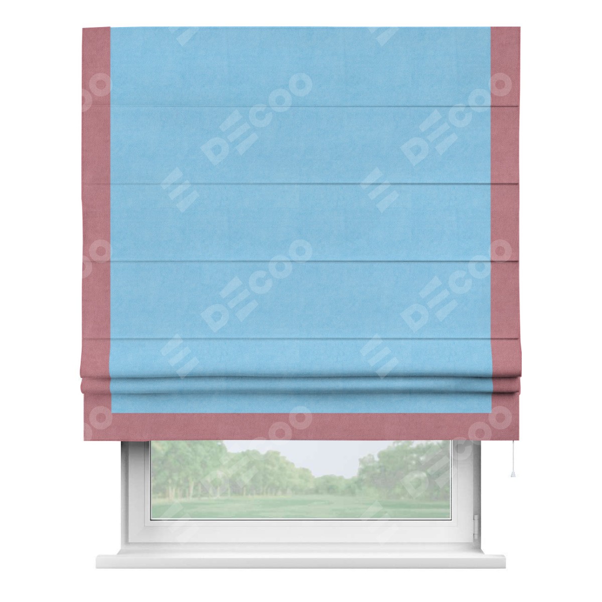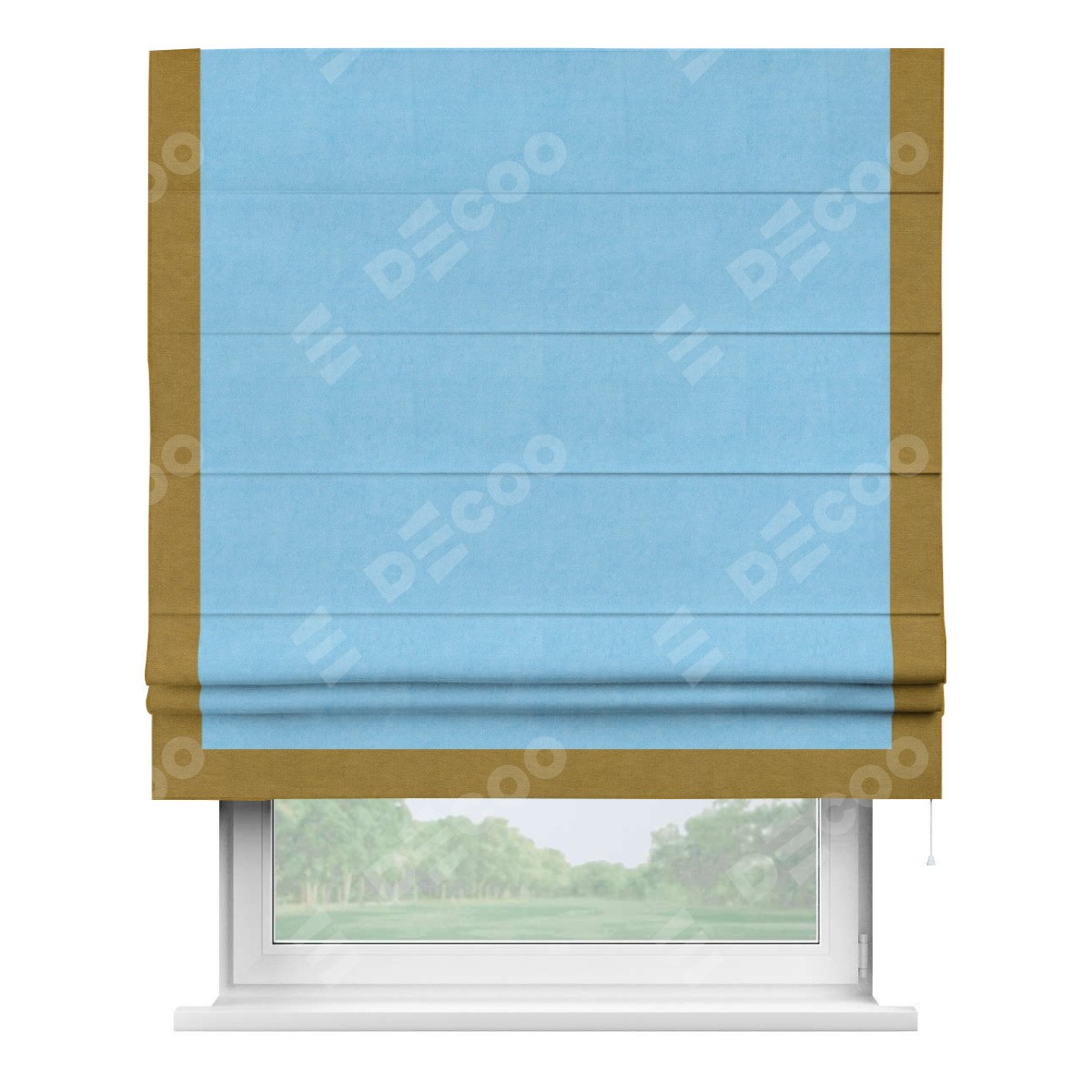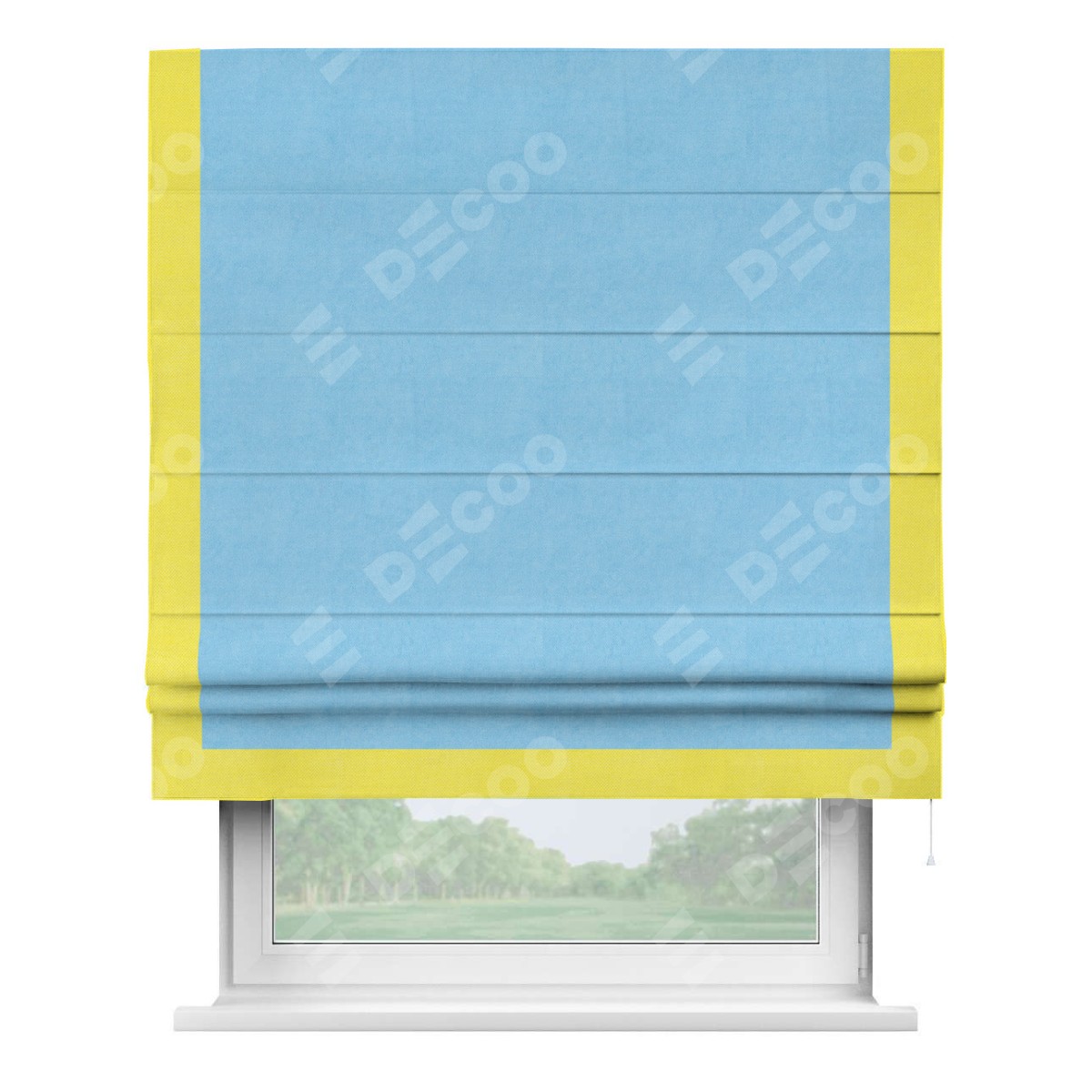 Римская штора «Кортин» с кантом Виктория, для проема, ткань вельвет голубой