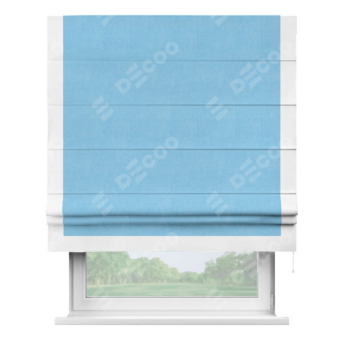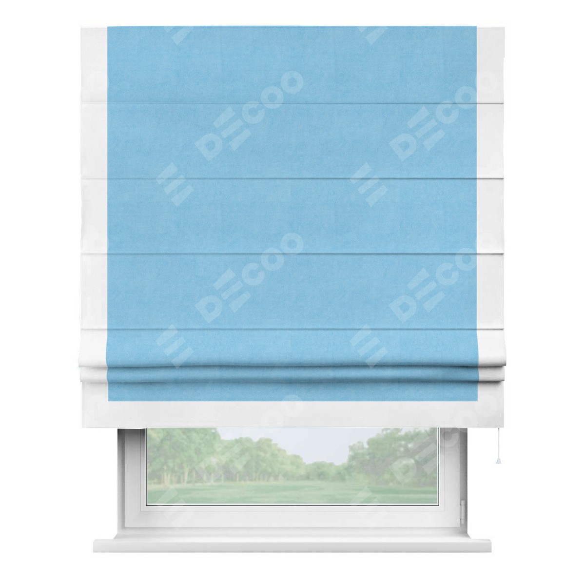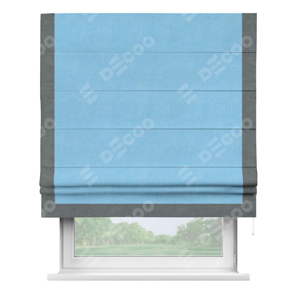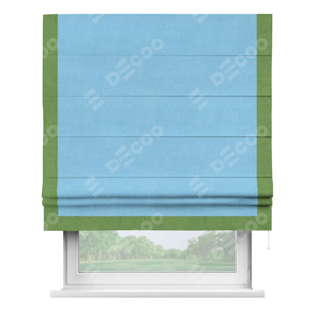 Римская штора «Кортин» с кантом Виктория, для проема, ткань вельвет голубой