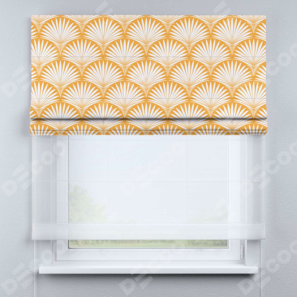 Римская штора «Кортин» день-ночь «Арт-деко листья желтый»
