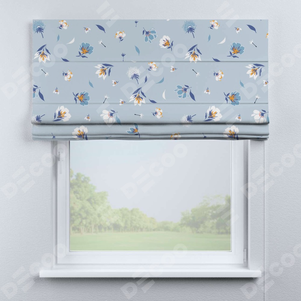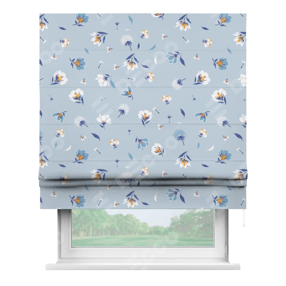 Римская штора «Кортин» для проема «Голубые цветы»