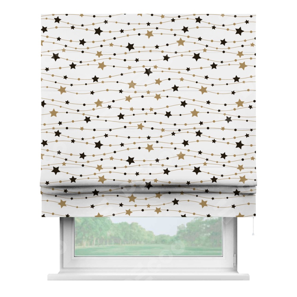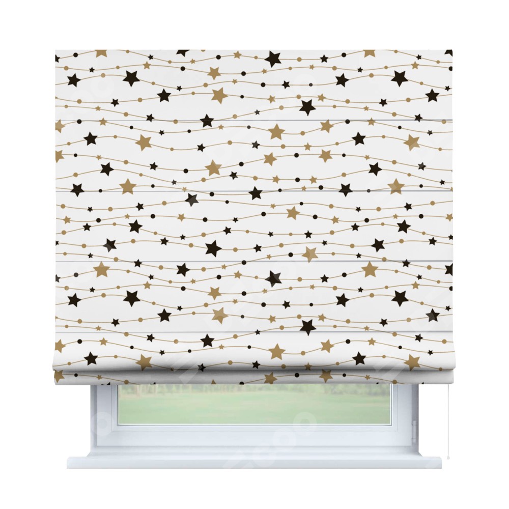 Римская штора производителя «Cortin», используется для проёма, пошита из ткани блэкаут с нанесением сублимационной печати «Звёздная нить». Имеет универсальный механизм и подходит для монтажа: на потолок, на стену и в нишу.