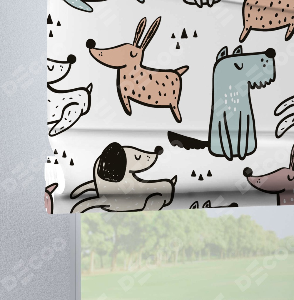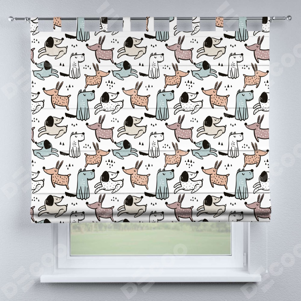 Римская штора производителя «Cortin», используется для проёма, пошита из ткани блэкаут с нанесением сублимационной печати «Очаровательные щеночки». Данная модель пошита на петлях, комплектуется на выбор круглым карнизом и подходит для монтажа на стену. Римская штора на петлях имеет простую систему регулировки высоты, отличительным преимуществом данной модели является простой способ монтажа. Достаточно повесить ее на трубу и штора готова!