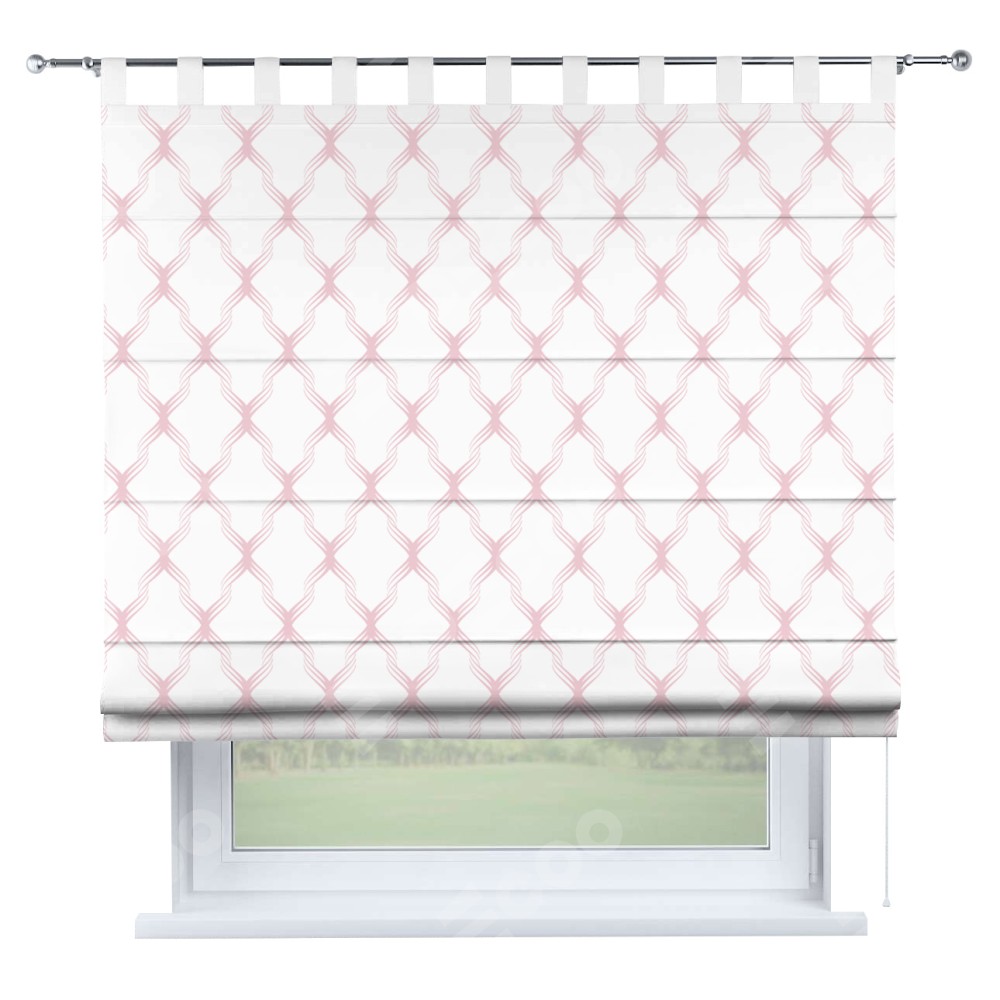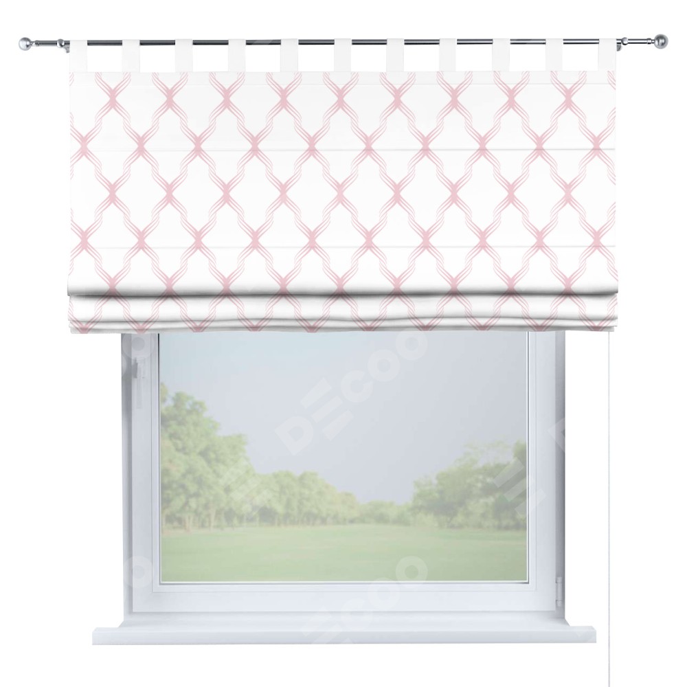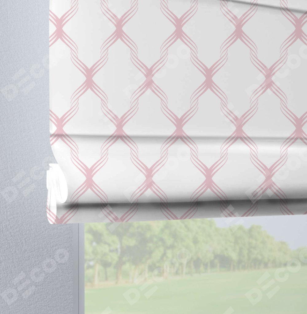 Римская штора производителя «Cortin», используется для проёма, пошита из ткани блэкаут с нанесением сублимационной печати «Розовые ромбы». Данная модель пошита на петлях, комплектуется на выбор круглым карнизом и подходит для монтажа на стену. Римская штора на петлях имеет простую систему регулировки высоты, отличительным преимуществом данной модели является простой способ монтажа. Достаточно повесить ее на трубу и штора готова!